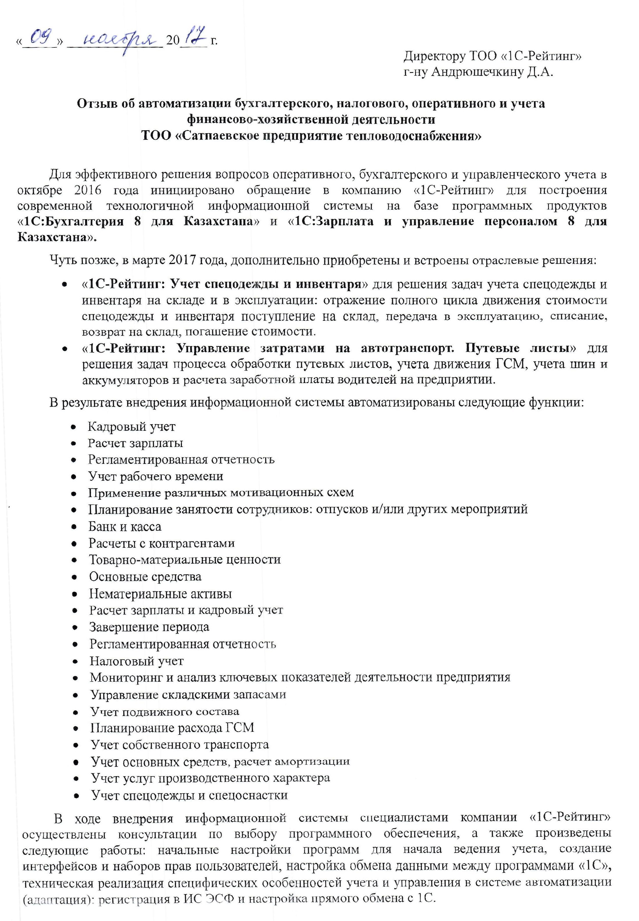 ТОО «Сатпаевское предприятие тепловодоснабжения»