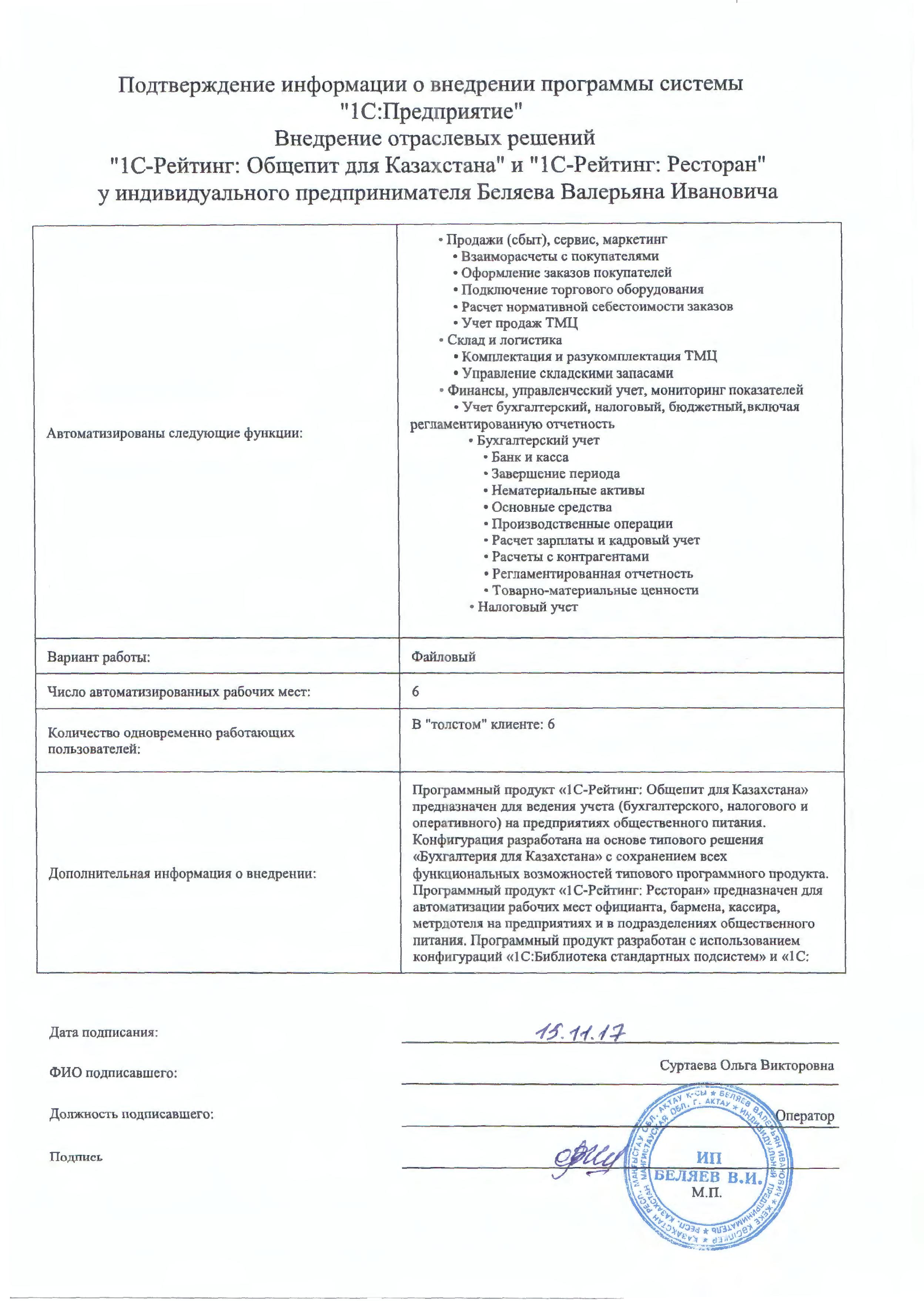 - Осуществляется консультирование по методическим вопросам работы с программой 1С