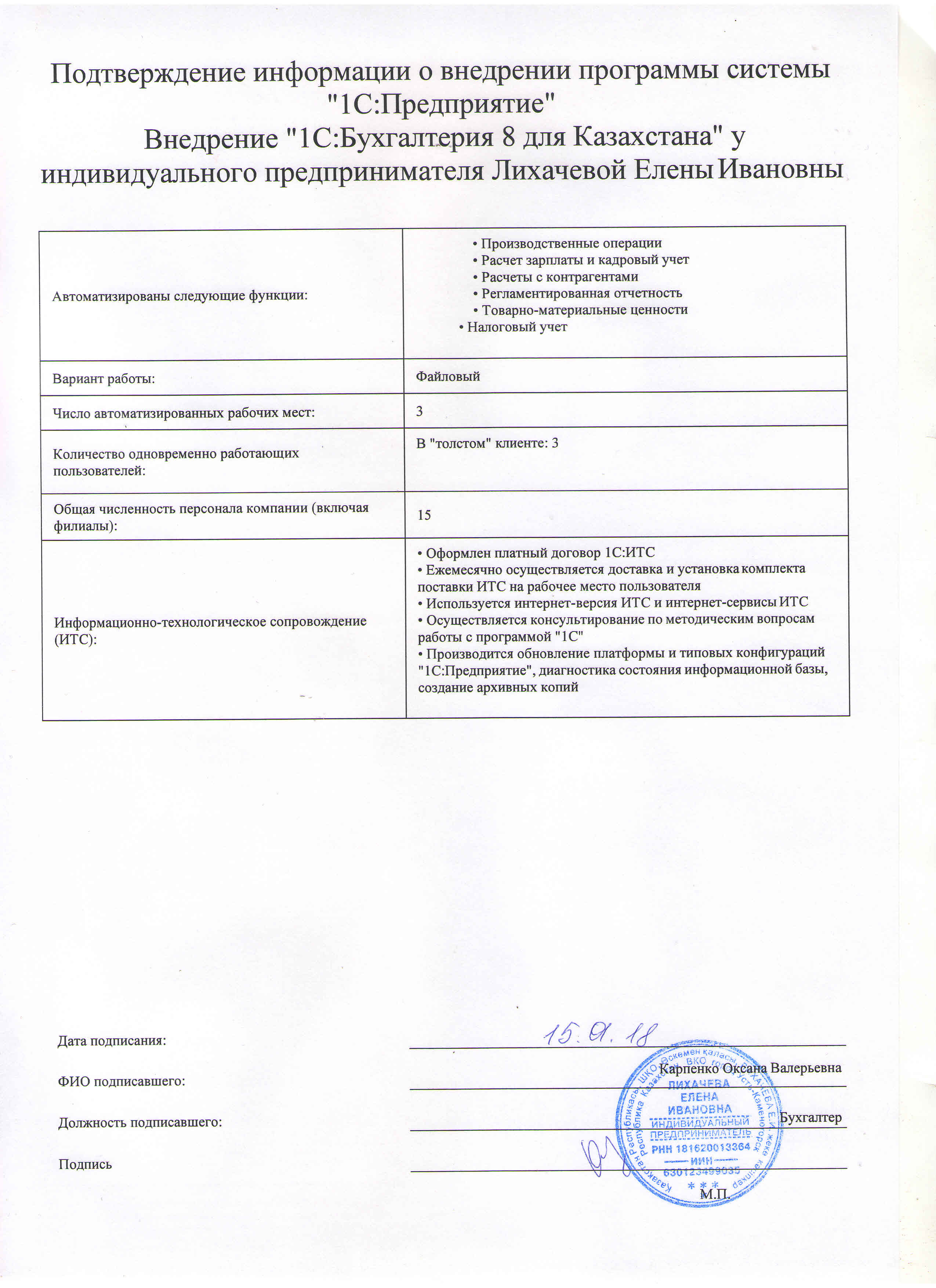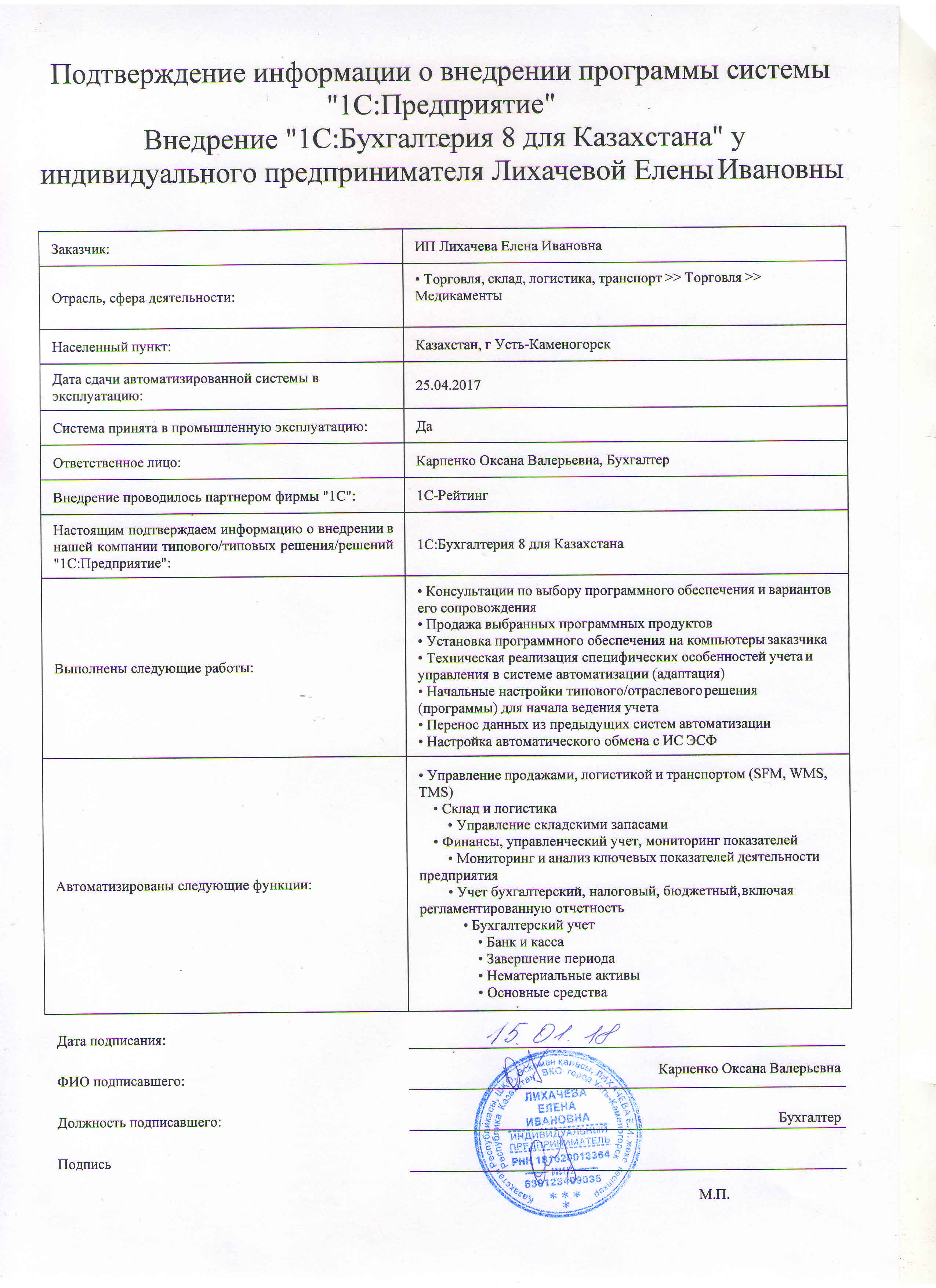 | Внедренное типовое решение: | 1С:Бухгалтерия 8 для Казахстана |