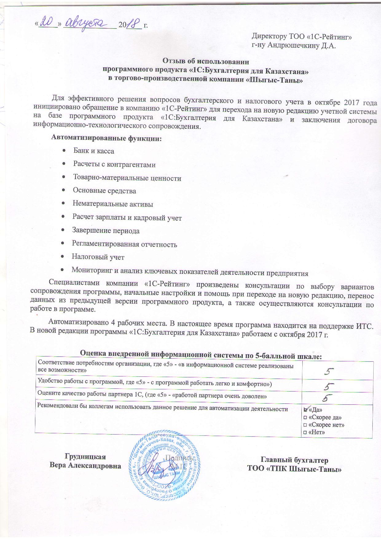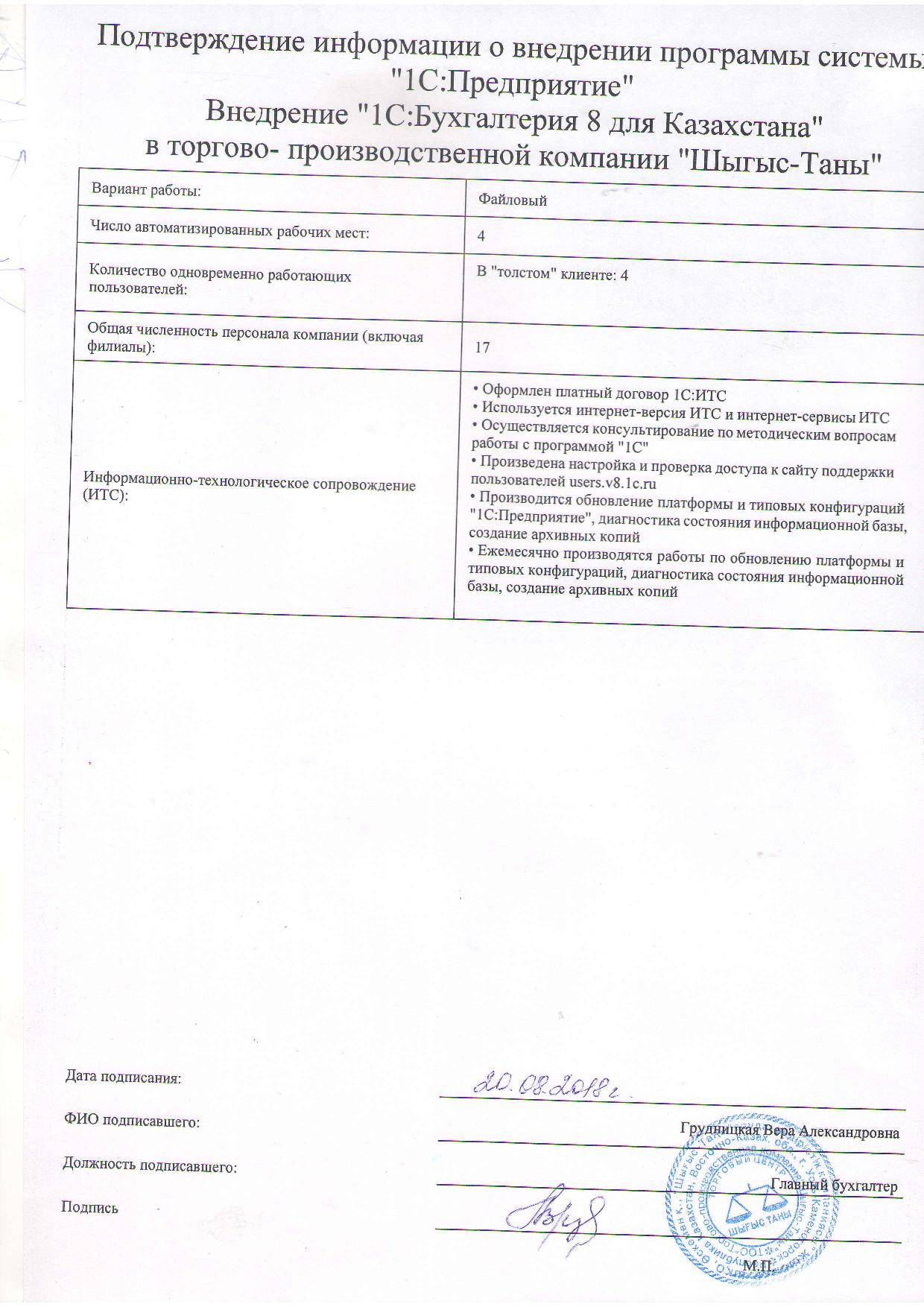 | Внедренное типовое решение: | 1С:Бухгалтерия 8 для Казахстана |