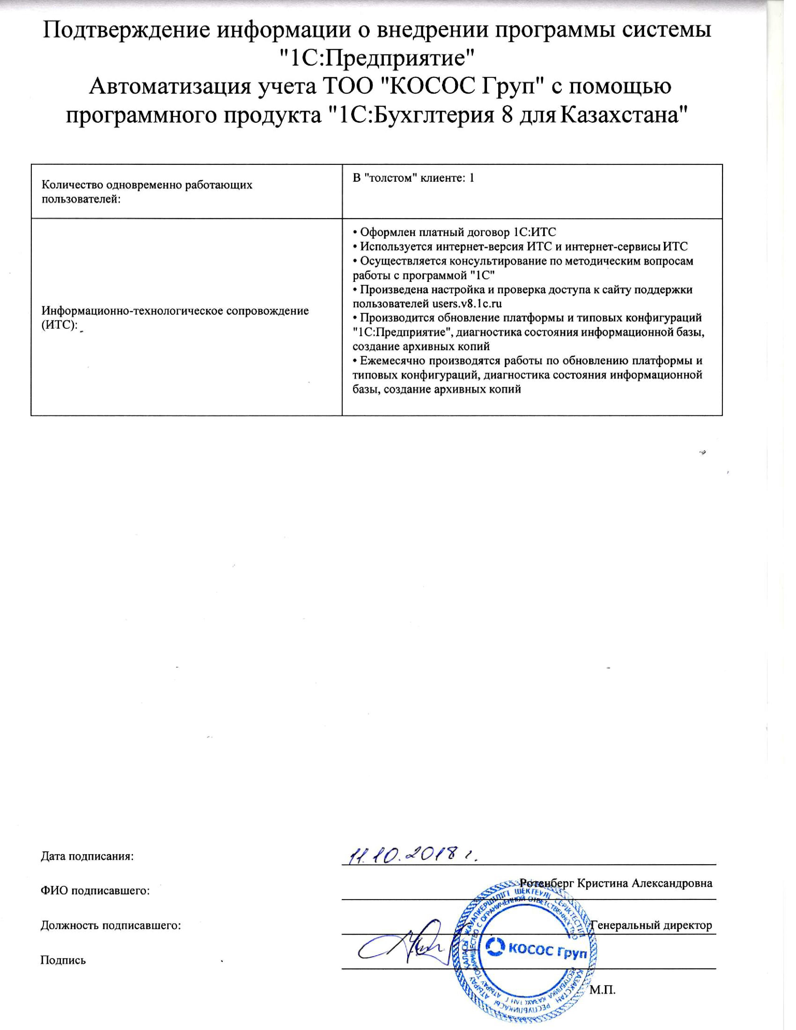 | Внедренное типовое решение: | 1С:Бухгалтерия 8 для Казахстана |