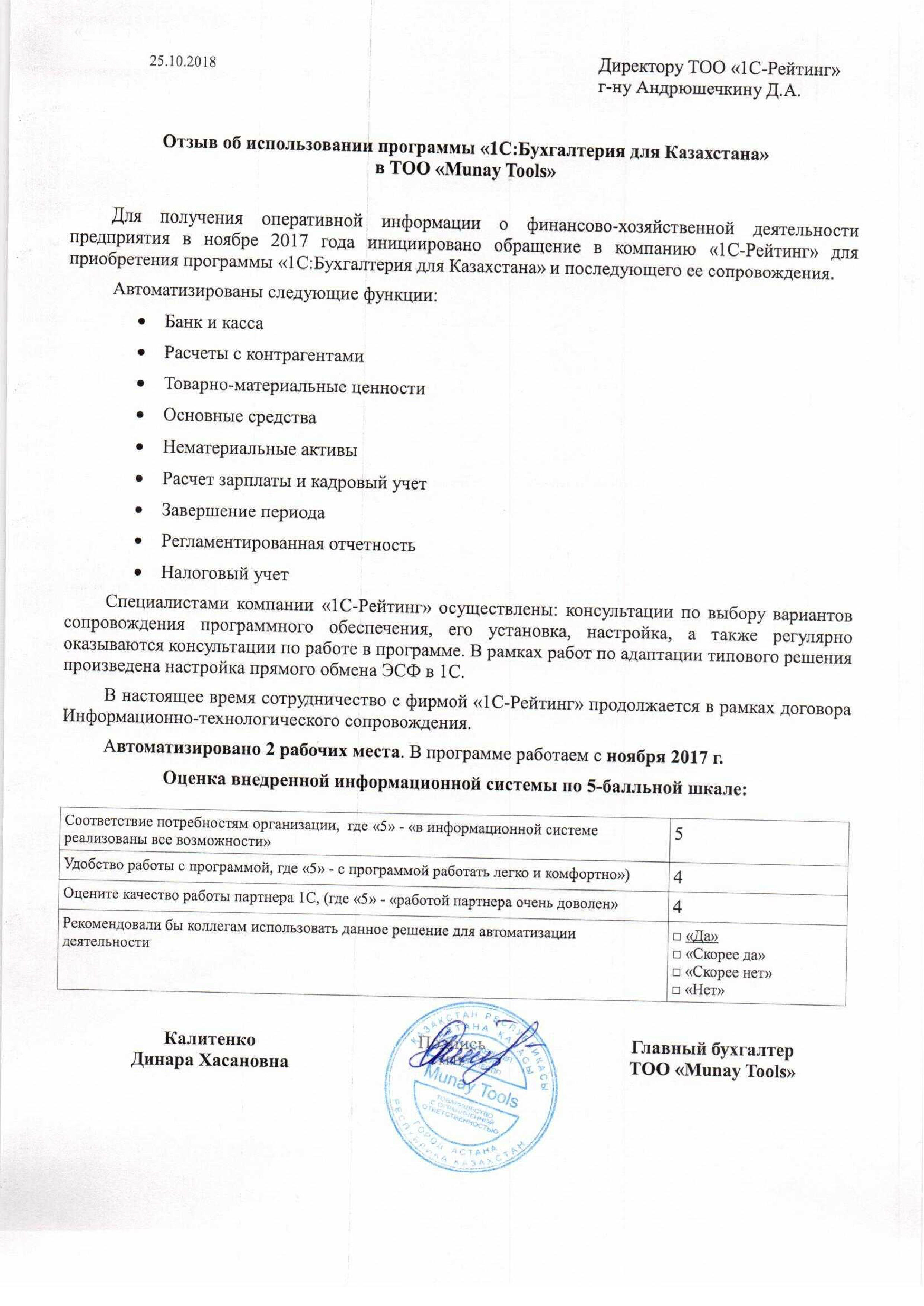 | Внедренное типовое решение: | 1С:Бухгалтерия 8 для Казахстана |