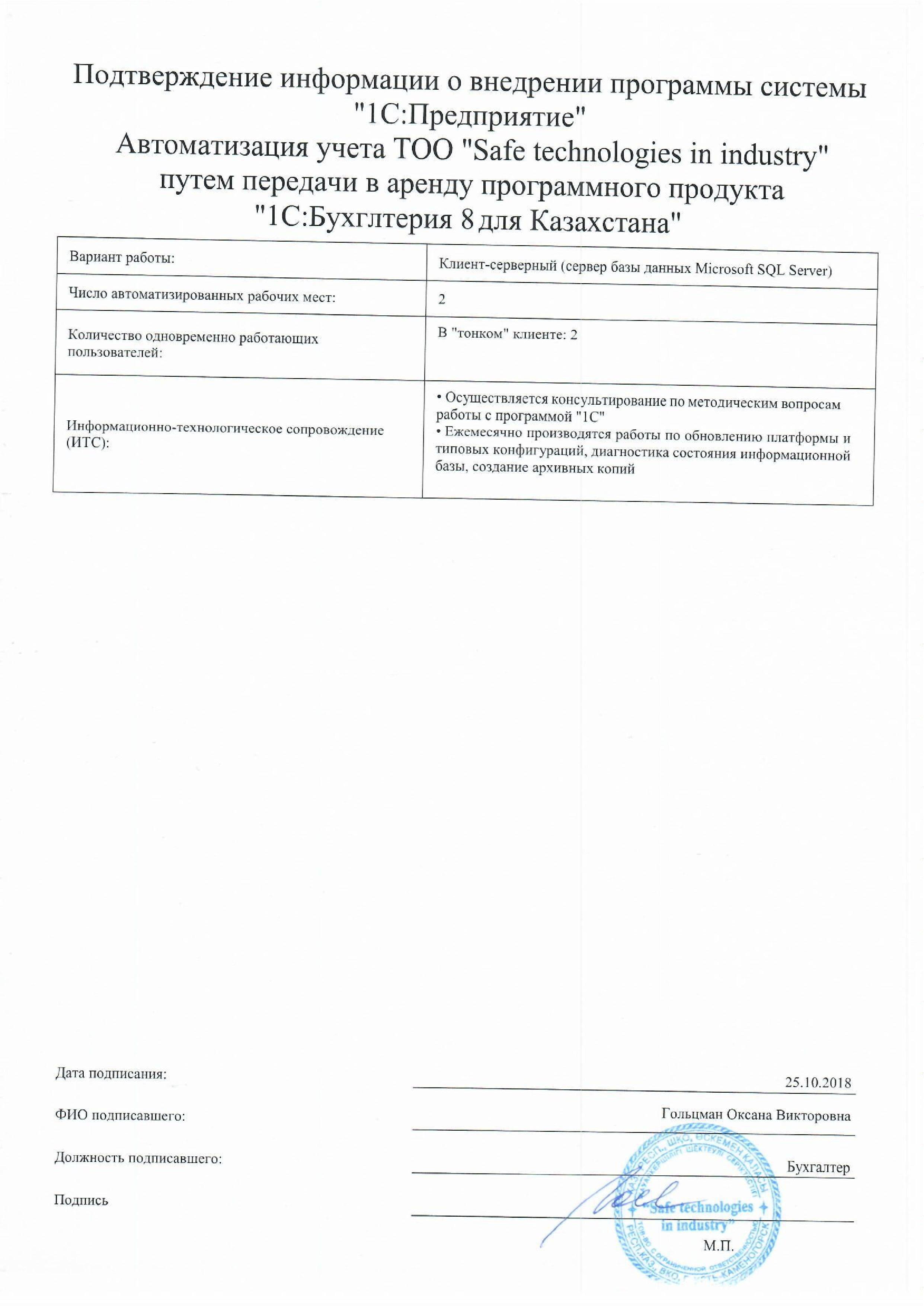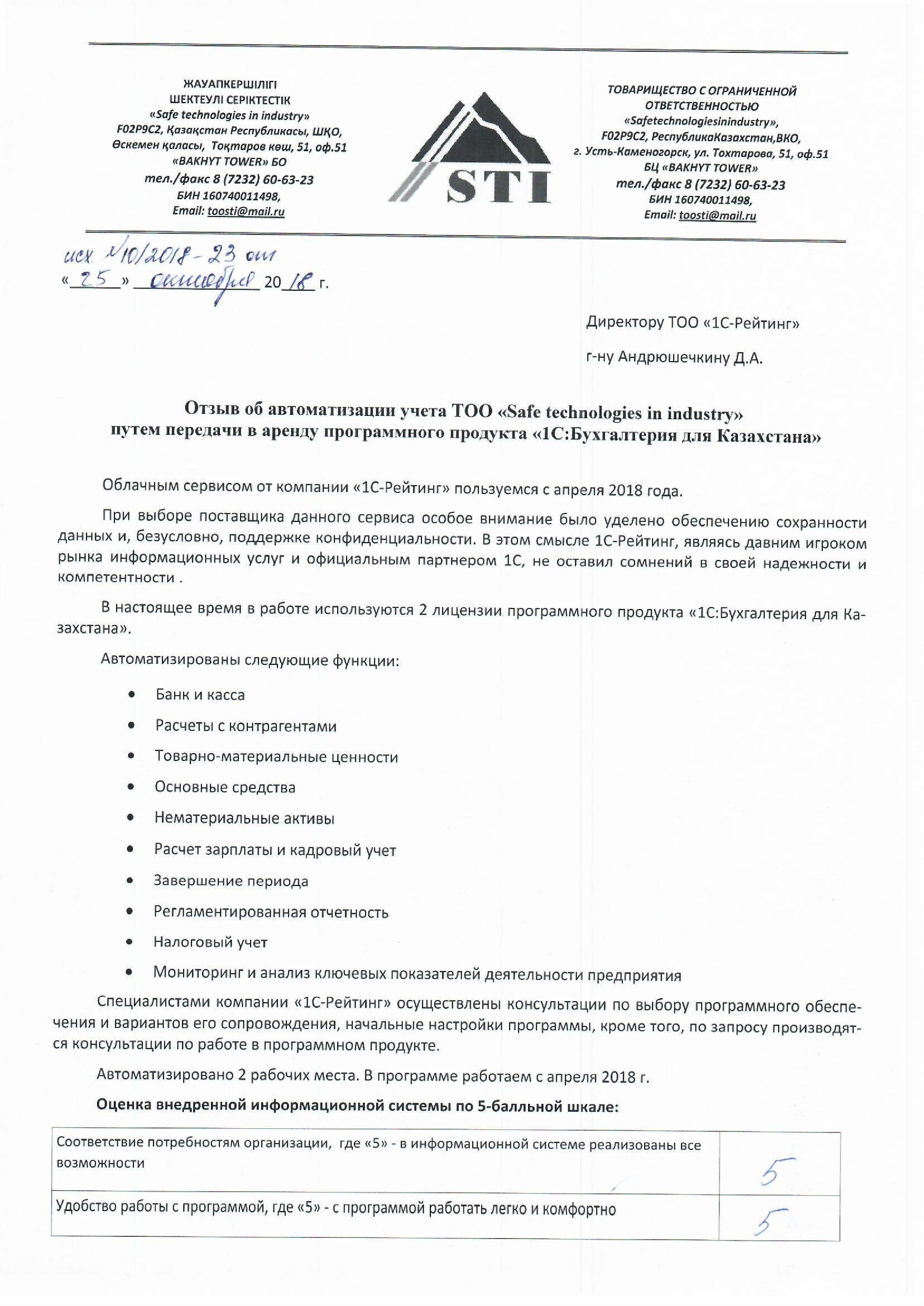 ТОО «Safe technologies in industry»
