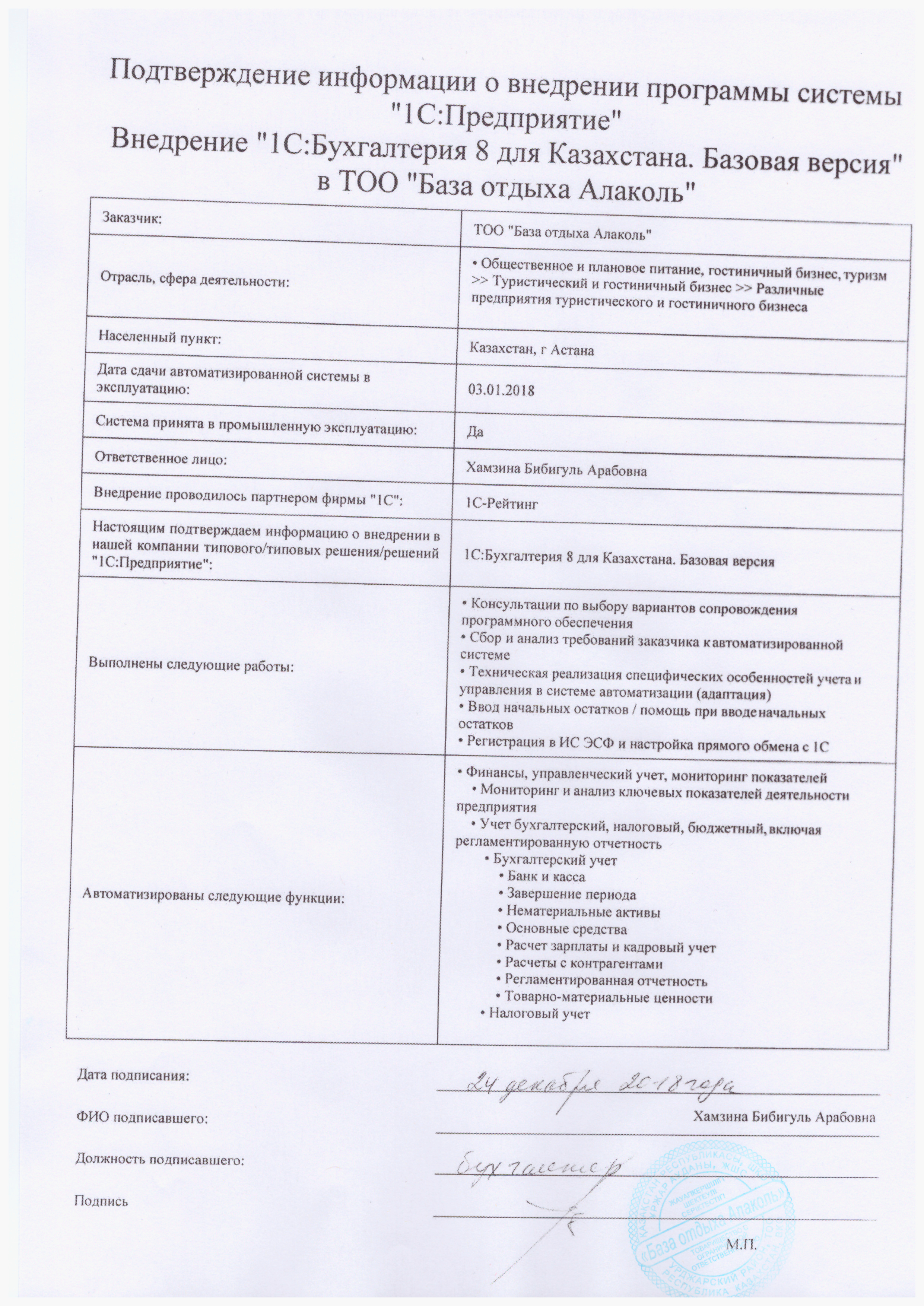 | Внедренное типовое решение: | 1С:Бухгалтерия для Казахстана. Базовая версия |