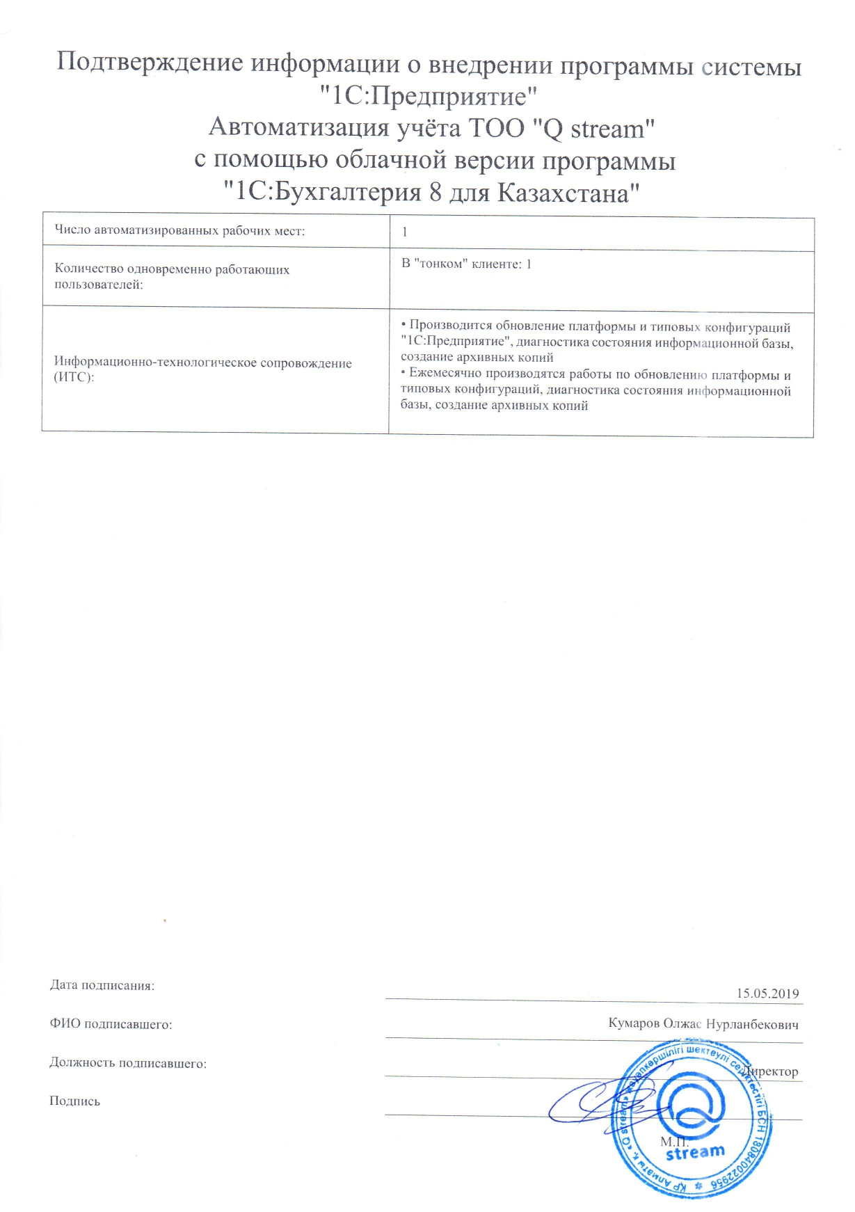 | Арендованное типовое решение: | 1С:Бухгалтерия для Казахстана |