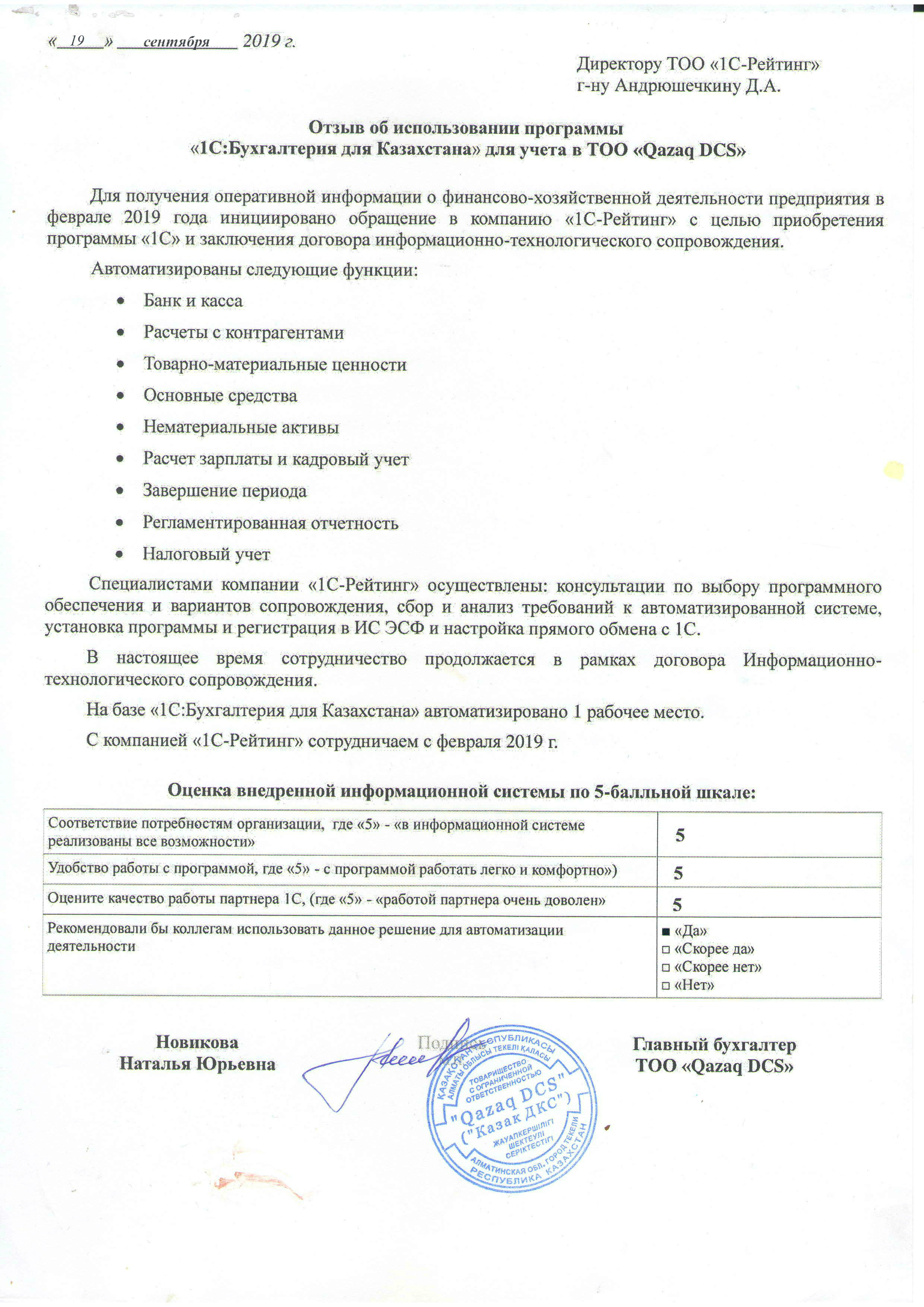 | Внедренное типовое решение: | 1С:Бухгалтерия 8 для Казахстана |