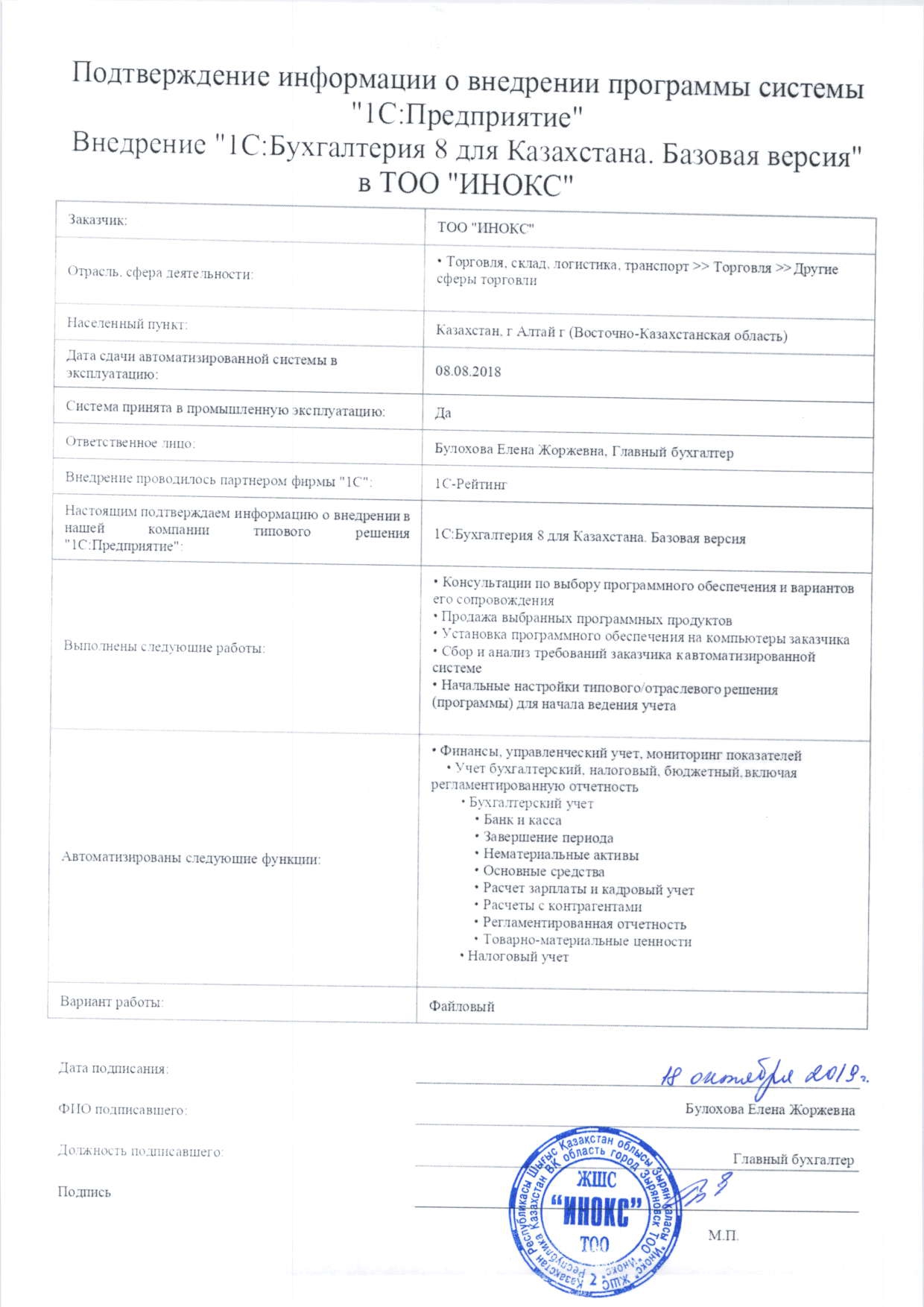 | Внедренное типовое решение: | 1С:Бухгалтерия для Казахстана. Базовая версия |