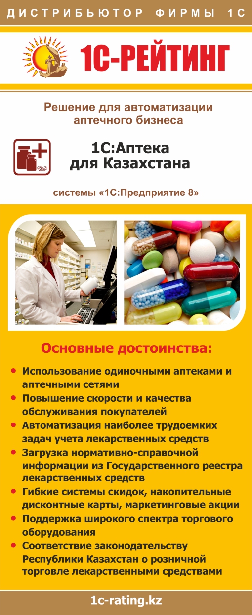 | Рекламная листовка "1С:Аптека для Казахстана" | Формат А-4 | Скачать |