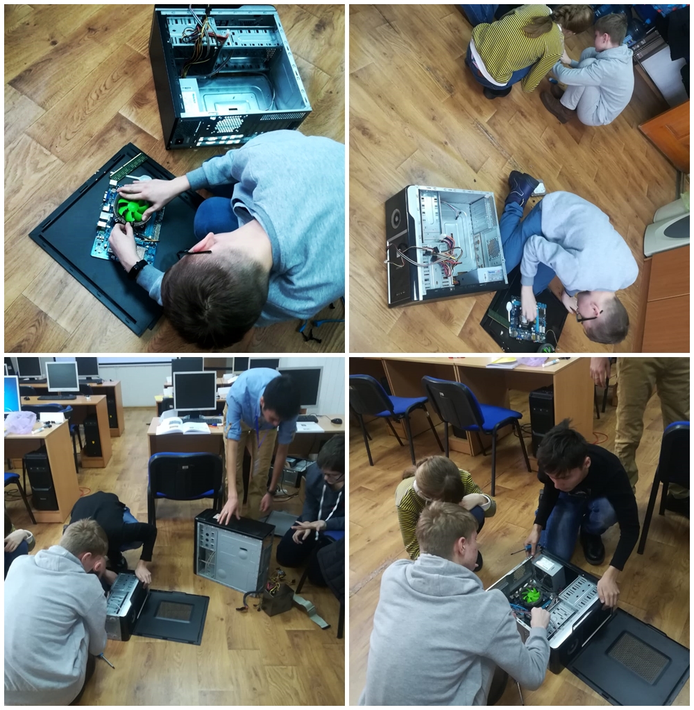 Собственно, разборкой и сборкой системного блока в течение 5 часов (вместо запланированных 2-х) занимались наши школьники на первом занятии в прошедшую субботу 25 января.