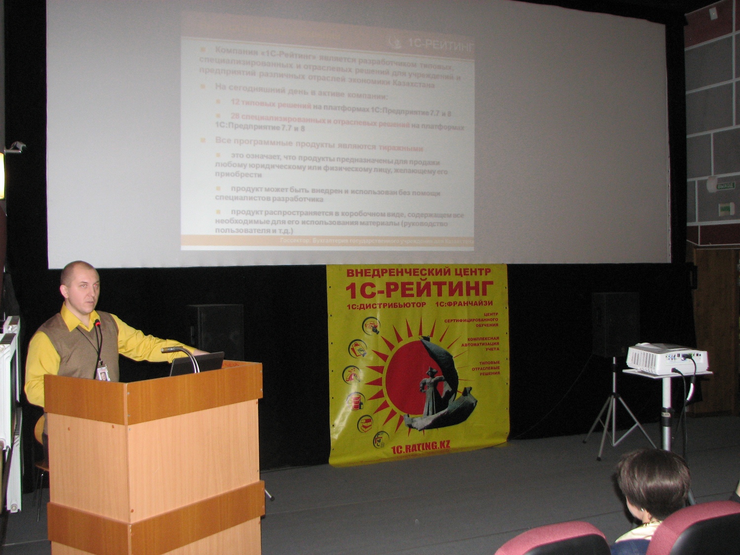 24 января 2013 года компанией «1С-Рейтинг» проведен практический обучающий семинар «1С:Предприятие 8» для государственного сектора: переход на Международные стандарты финансовой отчетности общественного сектора (МСФООС)». Семинар проводился в Усть-Каменогорске, но вызвал большой интерес и у представителей государственных учреждений из разных уголков области: Семей, Риддер, Зыряновск, Шемонаиха, Белоусовка, Курчатов. Всего семинар посетили 109 участников: бухгалтеры, руководители и IT-специалисты.