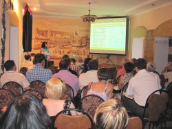 Людмила Нам из Шымкента и Ирина Сулименко из Костаная воспользовались предложением организаторов регионального семинара и включили в программу сообщения о своих отраслевых продуктах, разработанных на платформе 1С:Предприятие 8. Людмила рассказала о конфигурации «Образовательные услуги» для коммерческих учебных заведений, а Ирина сделала анонс программного продукта «1С:Бухгалтерия сельскохозяйственного предприятия для Казахстана».