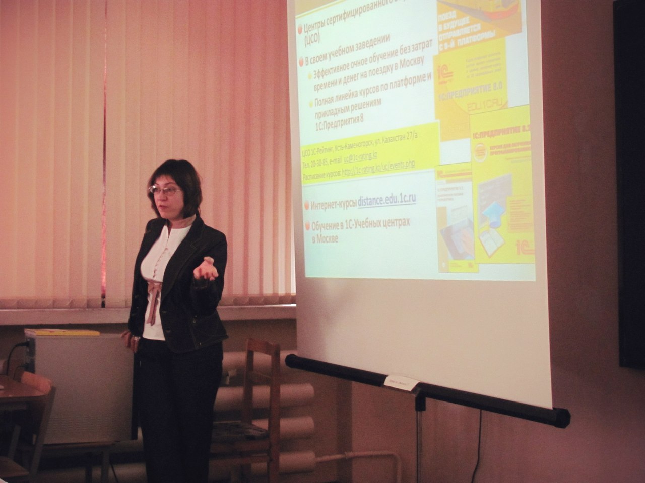 Вот и закончилось жаркое лето, а вместе с ним и замечательная пора для отдыха. Зеленые наряды деревьев сменились на роскошно украшенные золотом. И пусть еще стоят теплые деньки, но уже пришло время вновь сосредоточиться, погрузиться в учебный процесс, и пополнить багаж своих знаний и умений. В учебных аудиториях Восточно-Казахстанского государственного технического университета им. Д.Серикбаева оживленно зазвучали голоса студентов. В последнюю неделю сентября мы по доброй традиции проводим встречу со студентами третьего и четвертого курса кафедры «Информационных систем». На таких встречах ребята узнают, что приобретенные в процессе учебы профессиональные знания, они могут применить, работая в отрасли «1С». А также, научиться работать с программными продуктами «1С» можно параллельно с основным учебным процессом в вузе. Участие же в студенческих мероприятиях, таких как олимпиада по объектно-ориентированному программированию, конкурс дипломных проектов, научно-практические конференции и День 1С:Карьеры, могут стать реальным шансом для начала профессиональной карьеры. Перспективные же студенты могут пройти на базе компании «1С-Рейтинг» производственную и преддипломную практики, и разработать дипломный проект, реализовав реальную, актуальную задачу. Воспользовавшись всеми предоставляемыми сейчас возможностями и приложив свои усилия и желание к получению престижного образования, они смогут в дальнейшем уверенно шагнуть во взрослую жизнь.