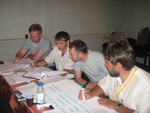 Согласно формату тренинга, участники получили возможность «опробовать» полученные знания на практике – разделившись на группы, они представляли свои варианты бизнес-процессов продажи проектов, искали ключевые управленческие решения, планировали ресурсы для выполнения проектов.