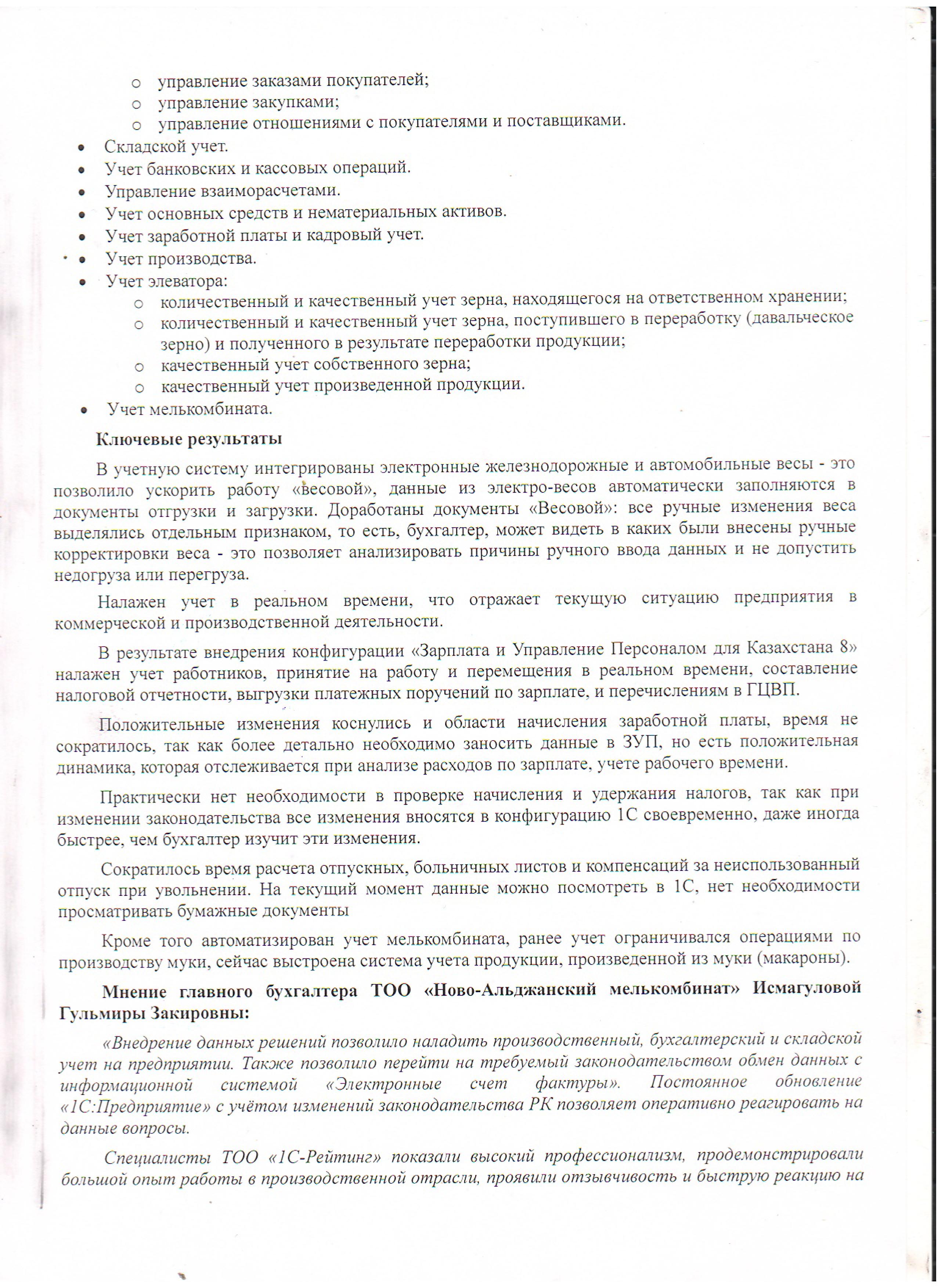 Мнение главного бухгалтера ТОО «Ново-Альджанский мелькомбинат» Исмагуловой Гульмиры Закировны:
