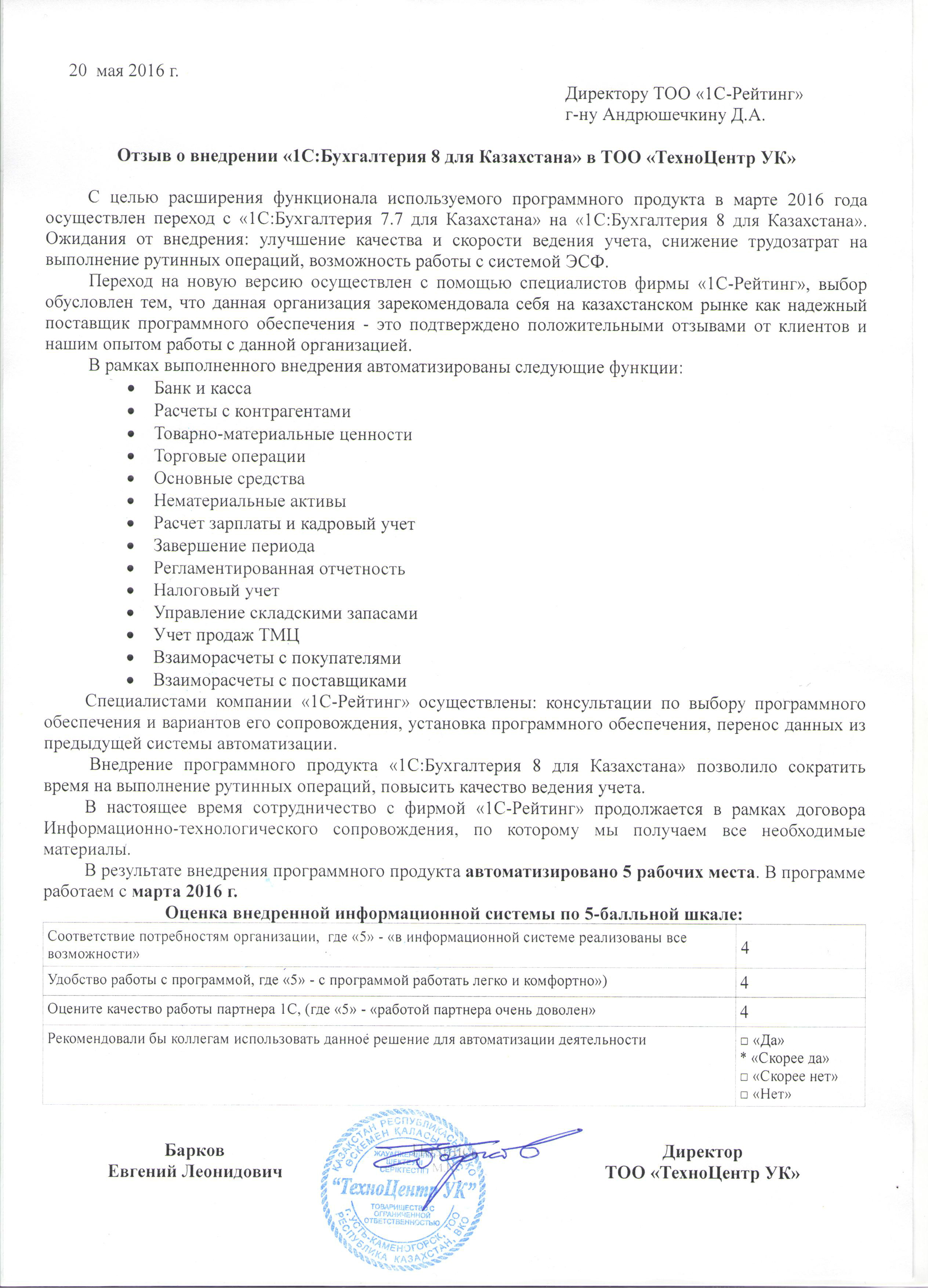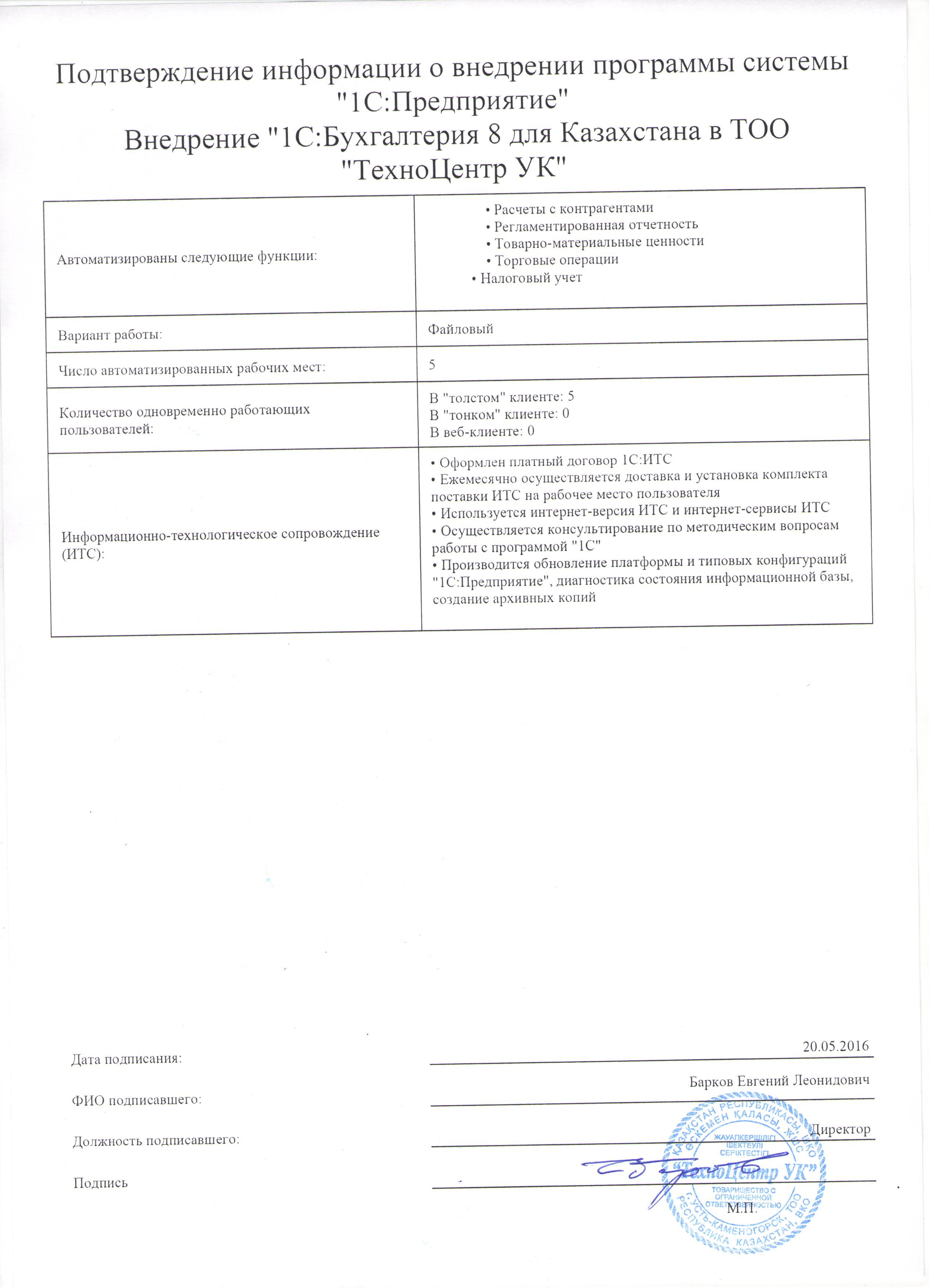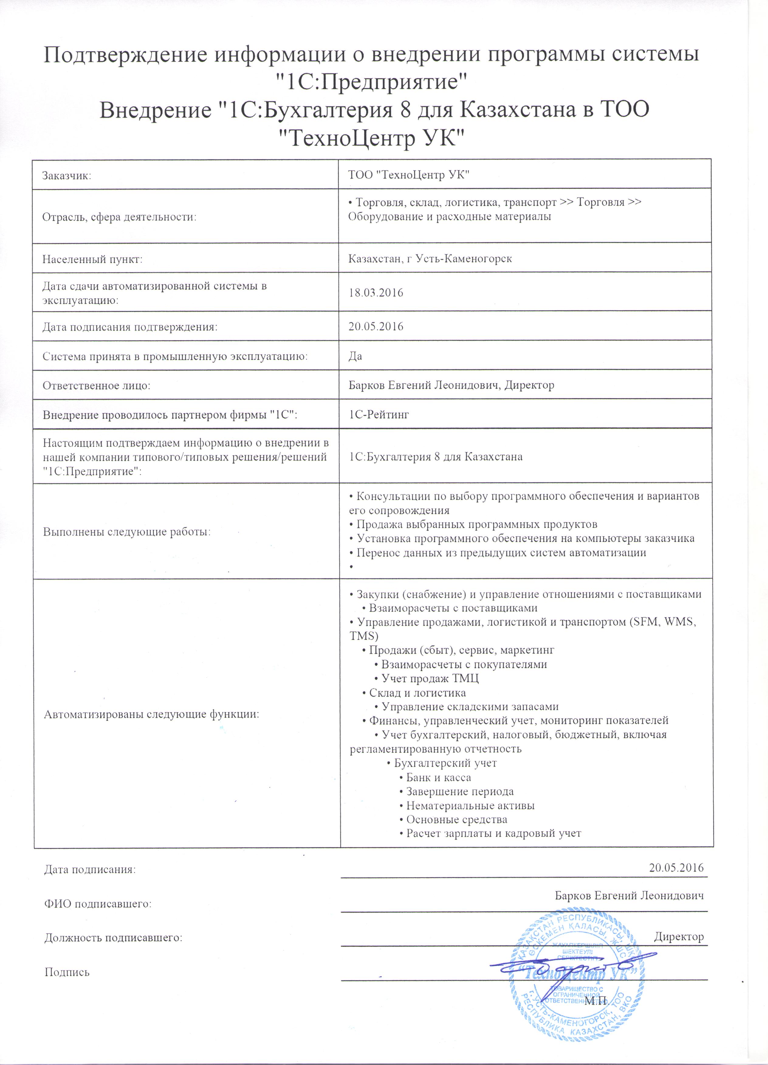 | Внедренное типовое решение: | 1С:Бухгалтерия 8 для Казахстана |