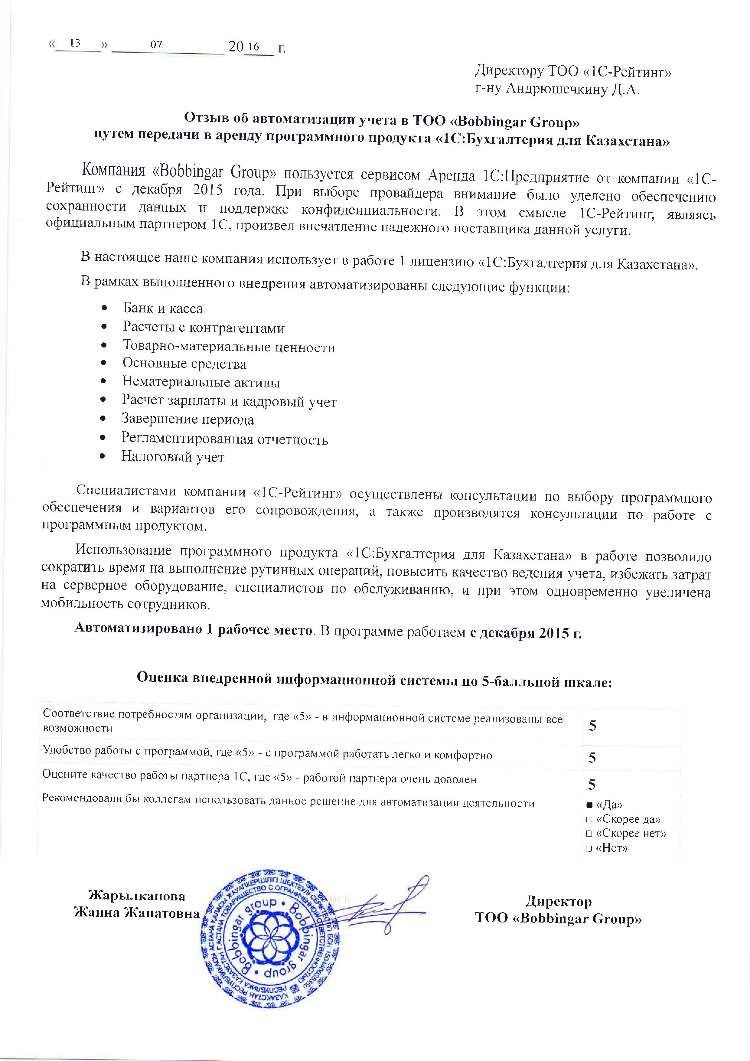 | Арендовано типовое решение: | 1С:Бухгалтерия 8 для Казахстана |