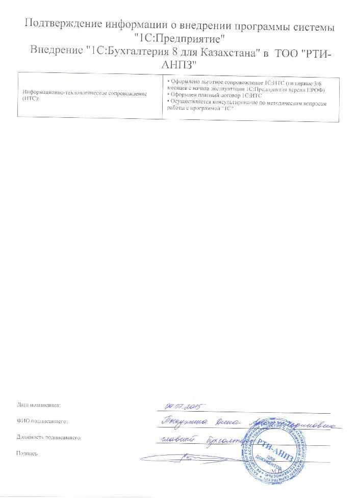 | Внедренное типовое решение: | 1С:Бухгалтерия 8 для Казахстана |