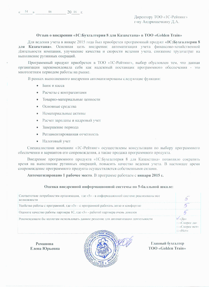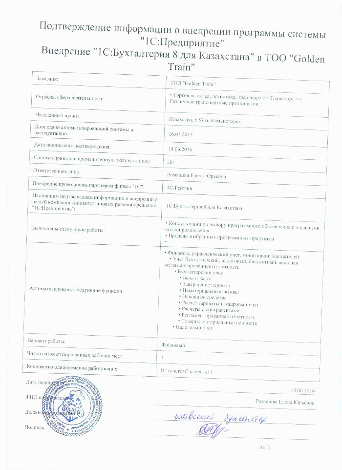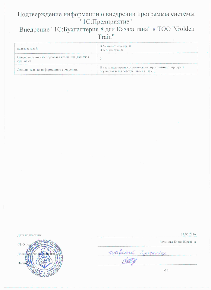 | Внедренное типовое решение: | 1С:Бухгалтерия 8 для Казахстана |