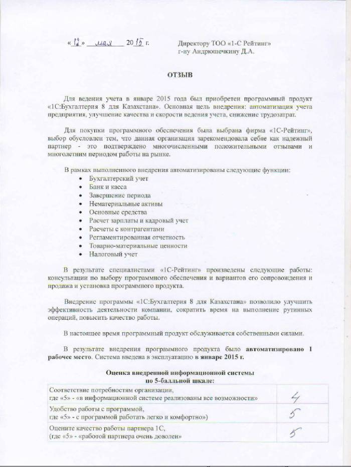 | Внедренное типовое решение: | 1С:Бухгалтерия 8 для Казахстана |