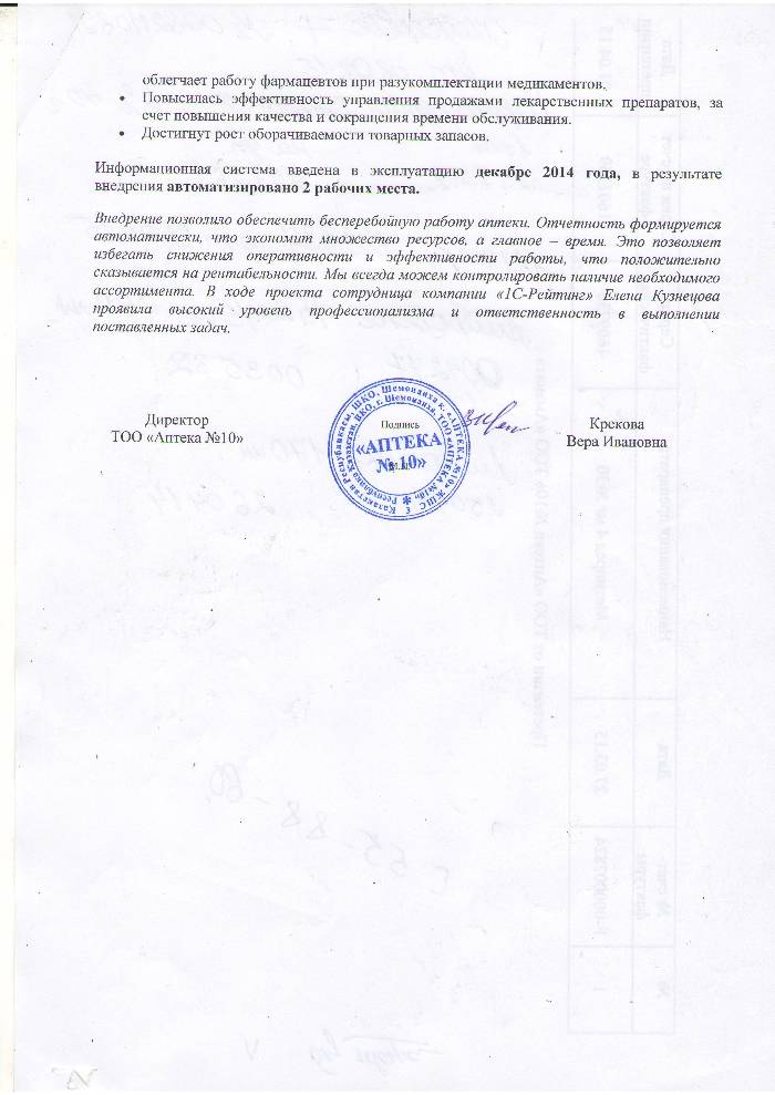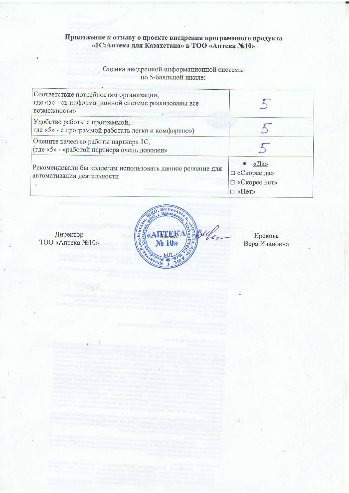 | Внедренное отраслевое решение: | 1С:Аптека для Казахстана |