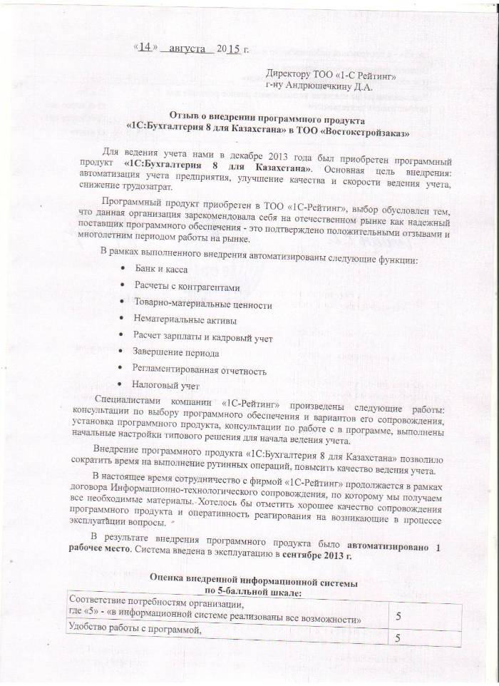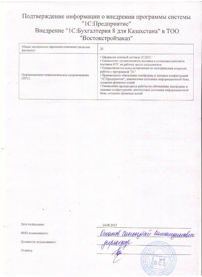 | Внедренное типовое решение: | 1С:Бухгалтерия 8 для Казахстана |
