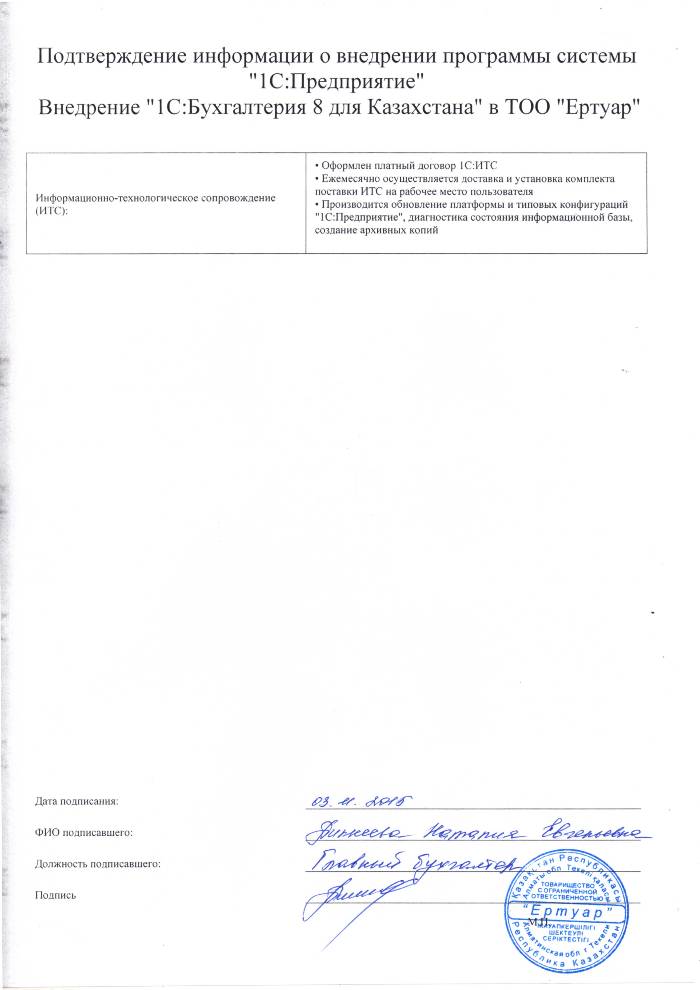Внедрение 1С:Бухгалтерия 8 для Казахстана в ТОО Ертуар