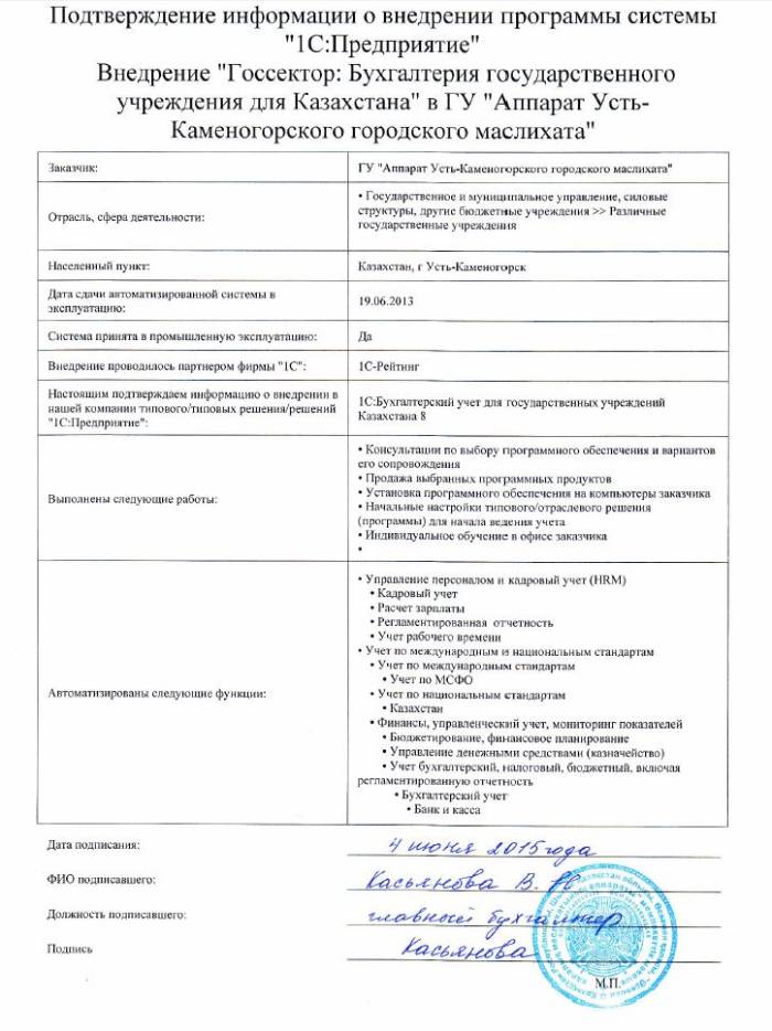 | Внедренное отраслевое решение: | Госсектор: Бухгалтерия государственного учреждения для Казахстана |