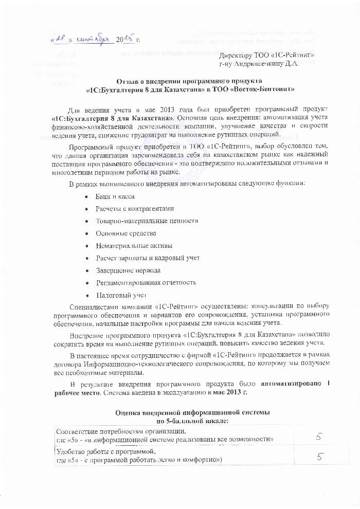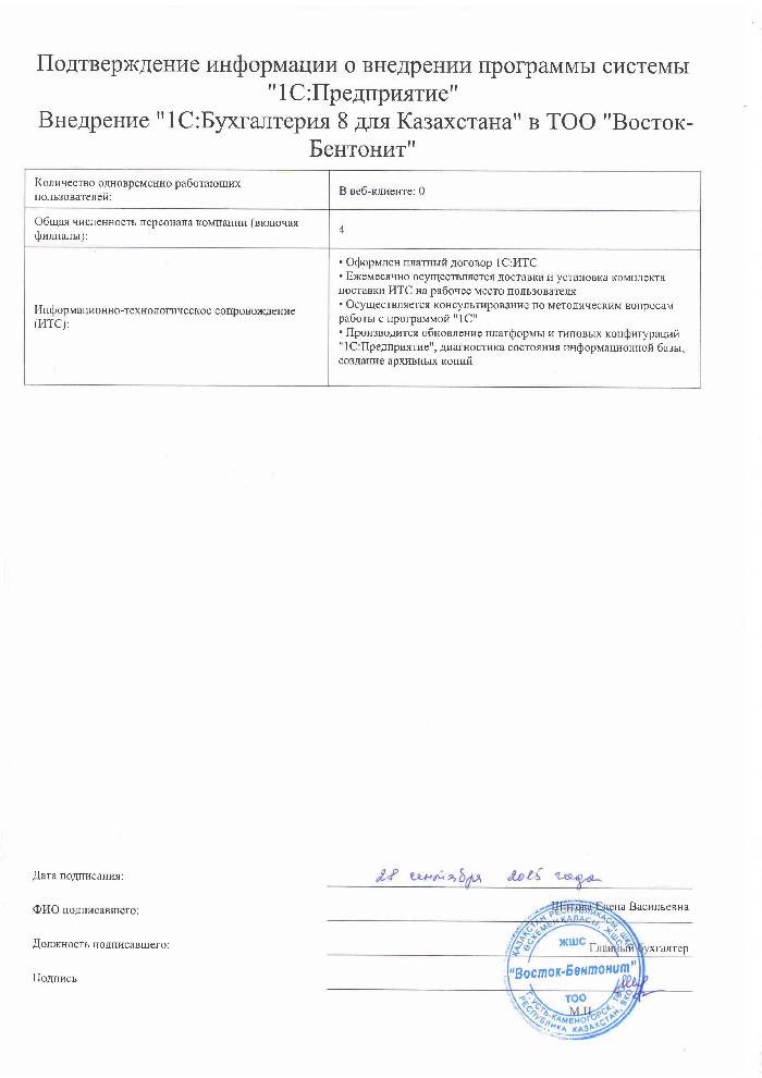 | Внедренное типовое решение: | 1С:Бухгалтерия 8 для Казахстана |