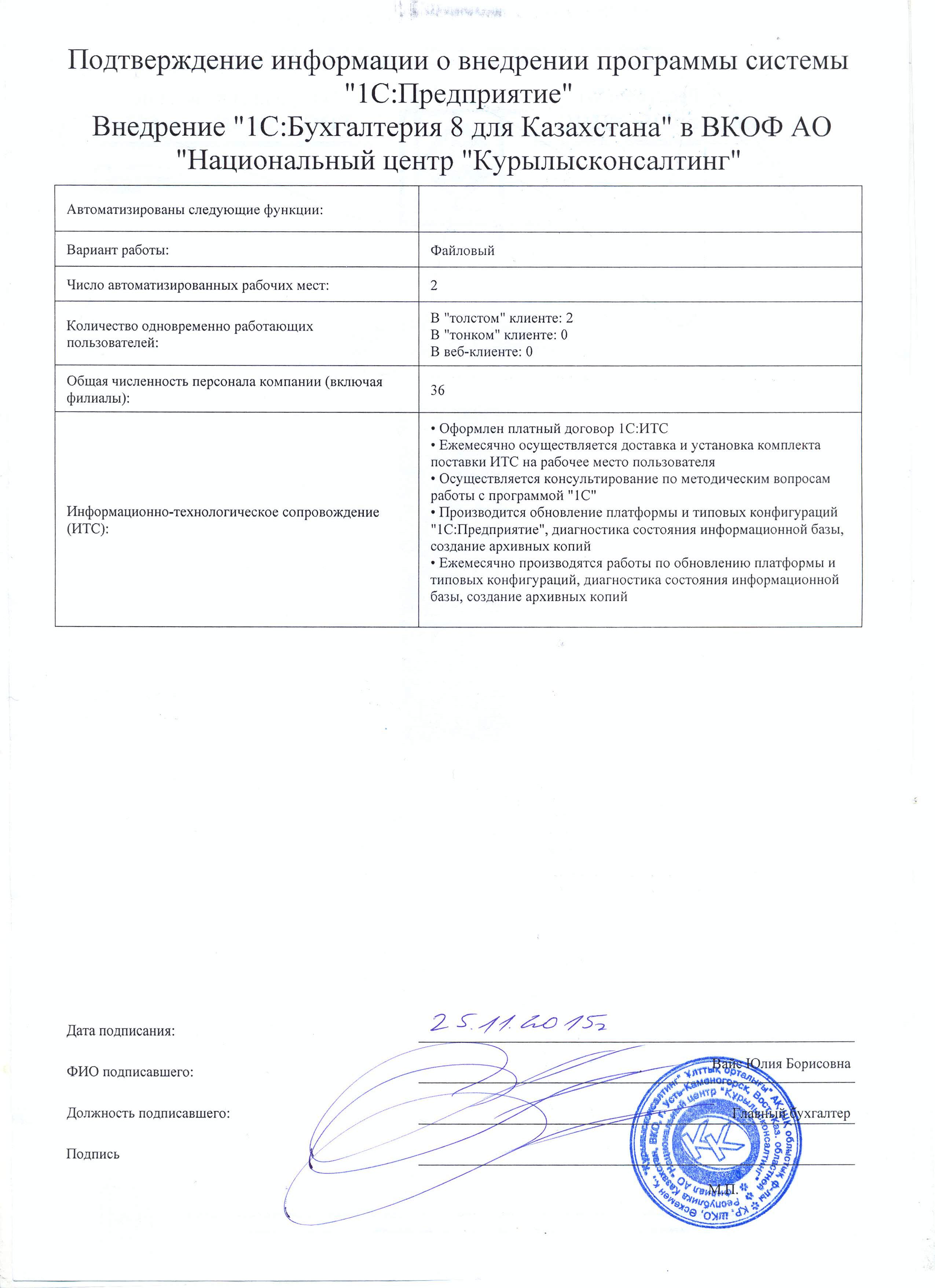 | Внедренное типовое решение: | 1С:Бухгалтерия 8 для Казахстана |
