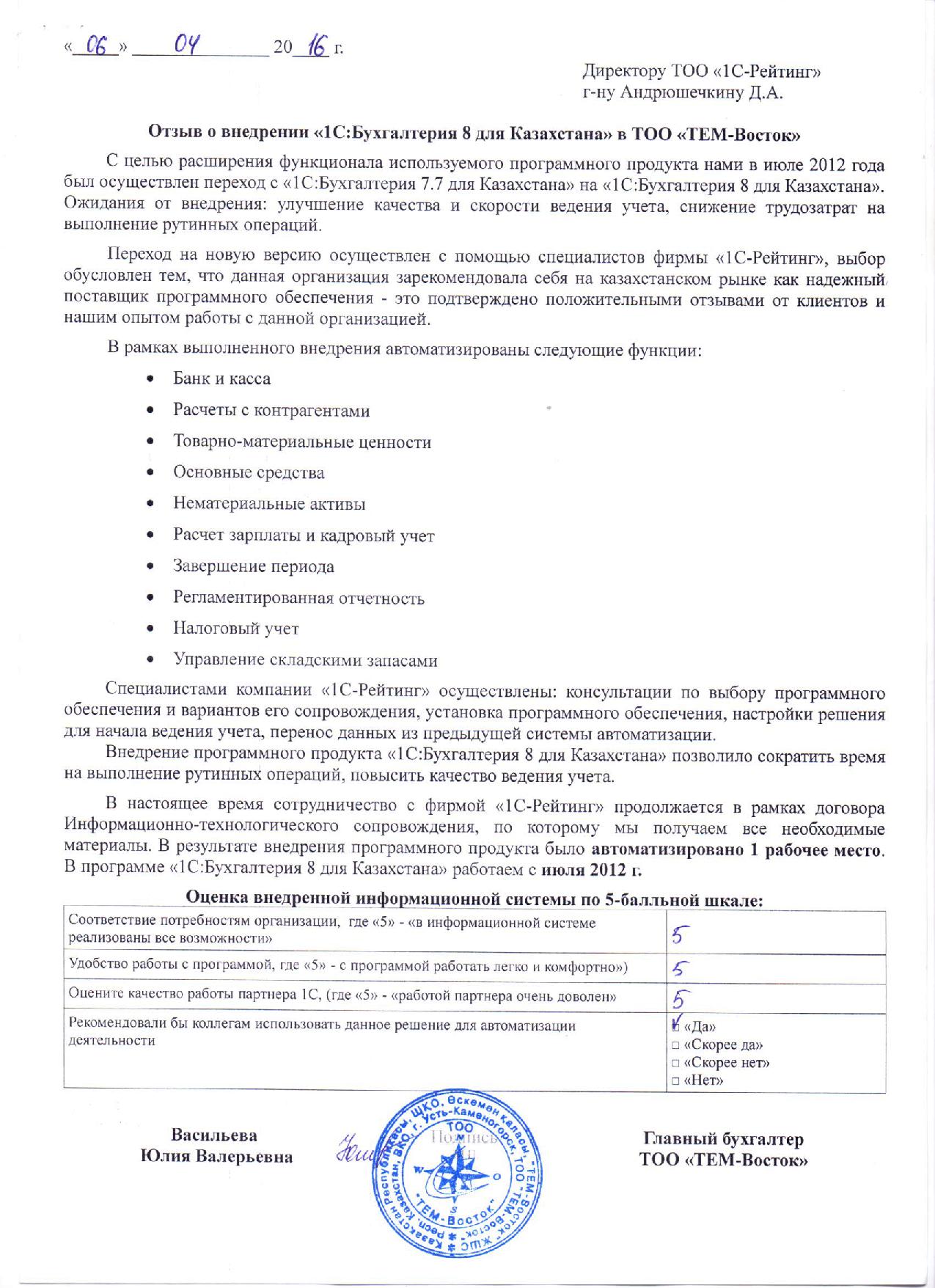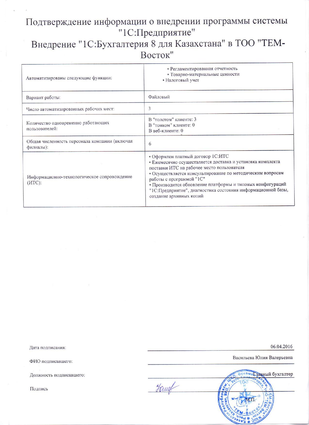 | Внедренное типовое решение: | 1С:Бухгалтерия 8 для Казахстана |