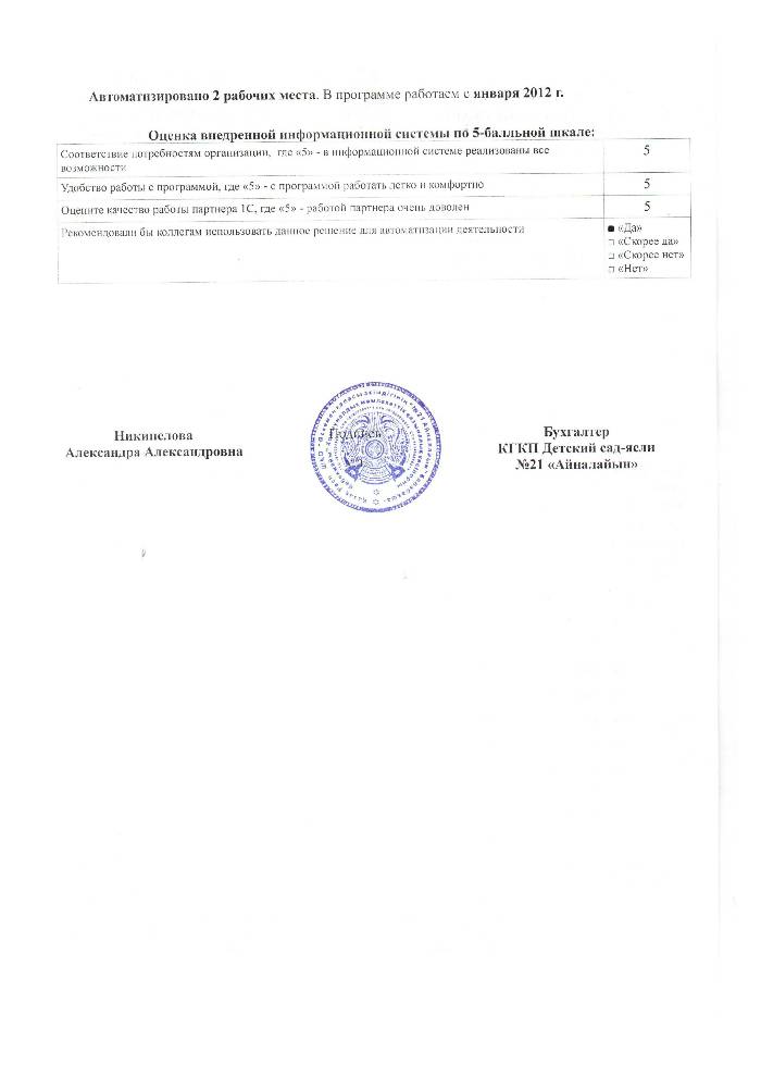 Внедрение 1C:Бухгалтерия 8 для Казахстана в КГКП Детский сад-ясли №21 Айналайын