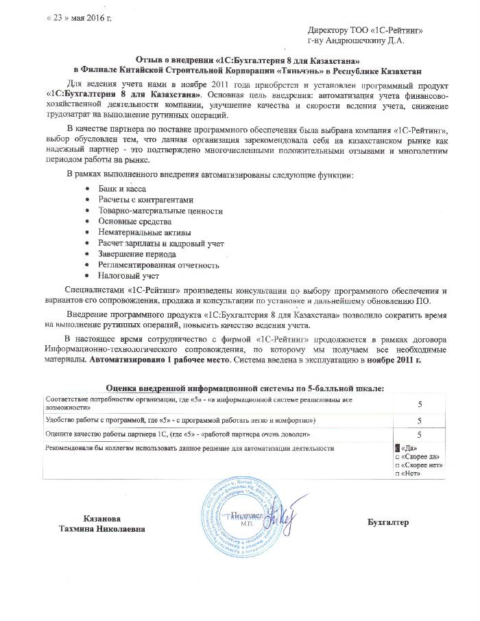 | Внедренное типовое решение: | 1С:Бухгалтерия 8 для Казахстана |