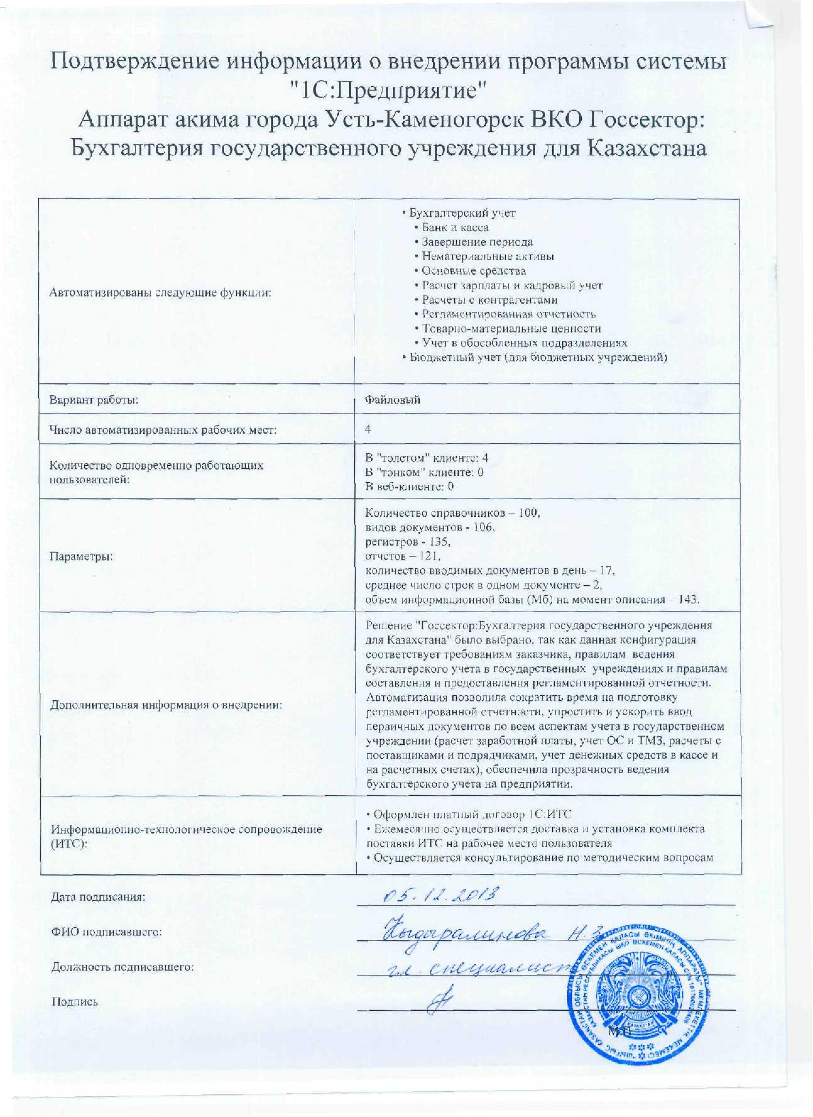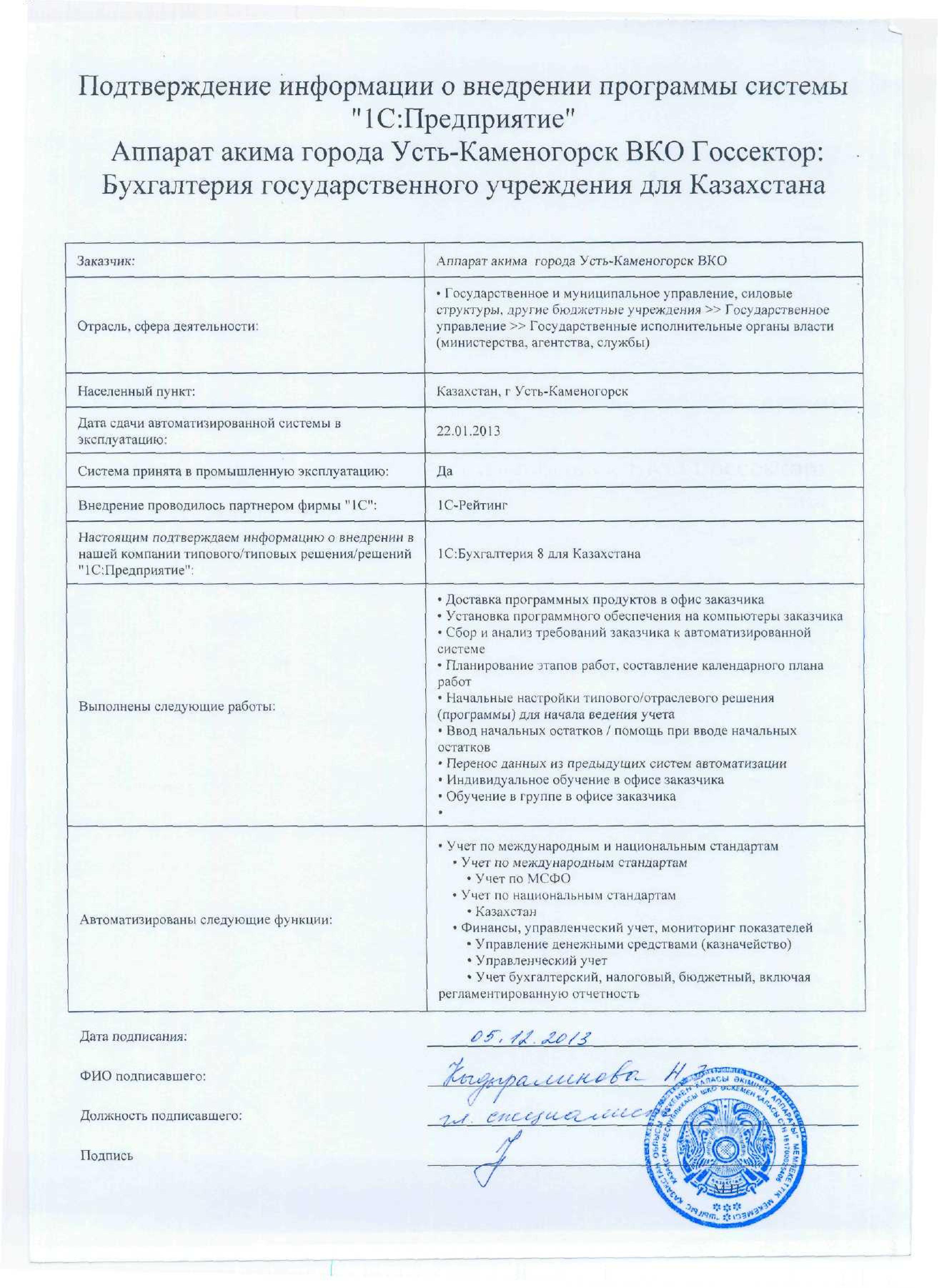 | Внедренное отраслевое решение: | Госсектор: Бухгалтерия государственного учреждения для Казахстана |