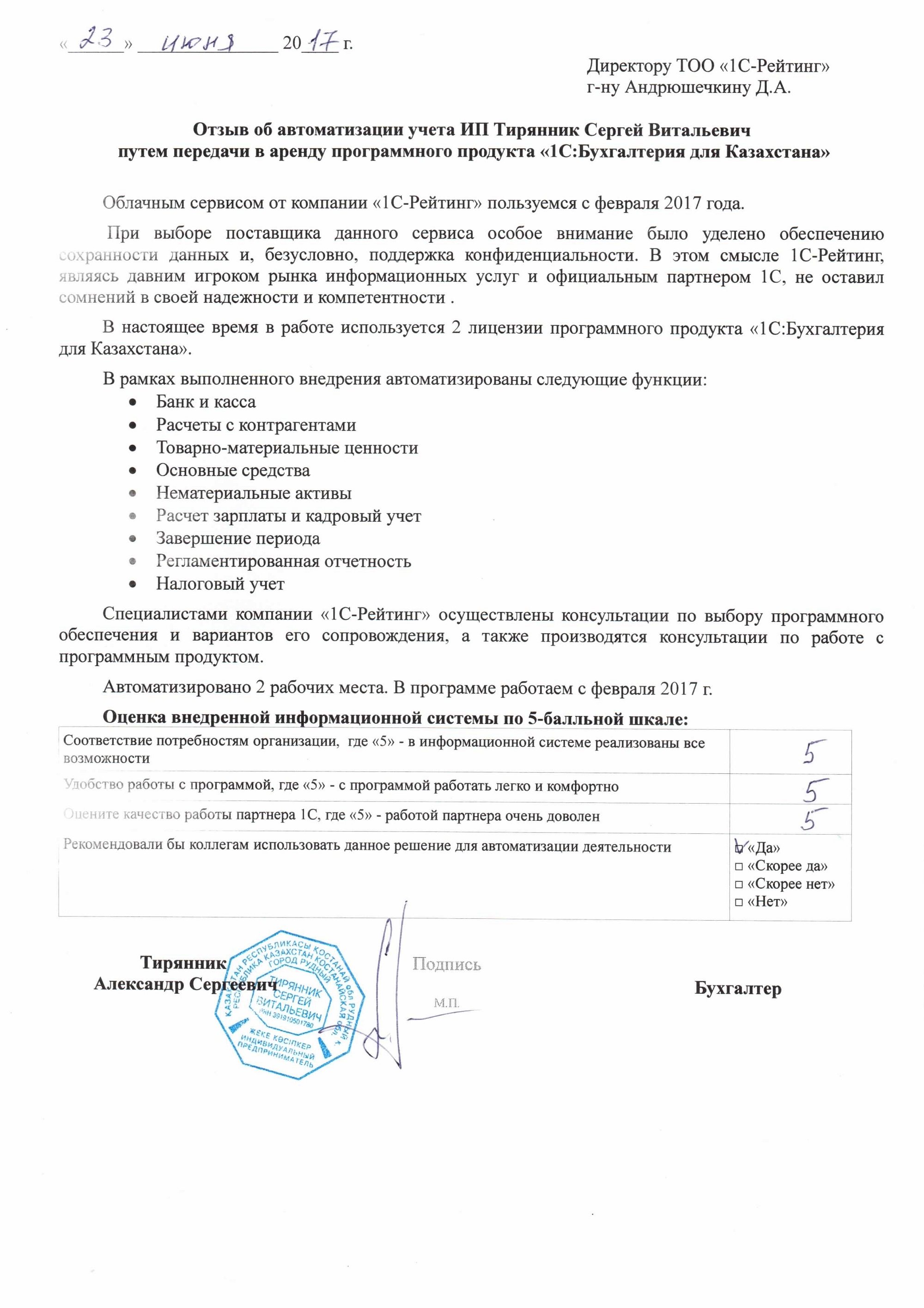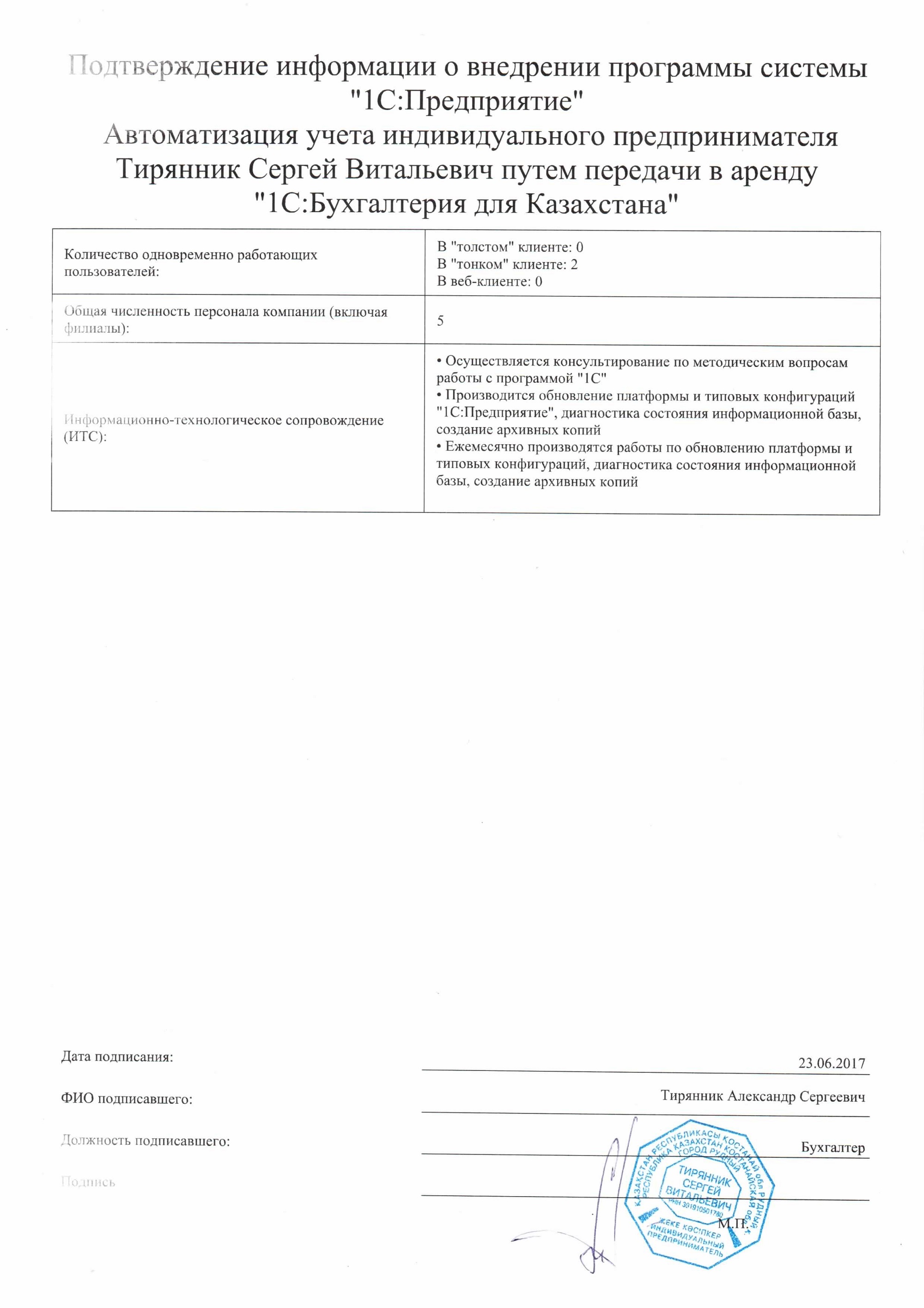 | Арендованное типовое решение: | 1С:Бухгалтерия для Казахстана |