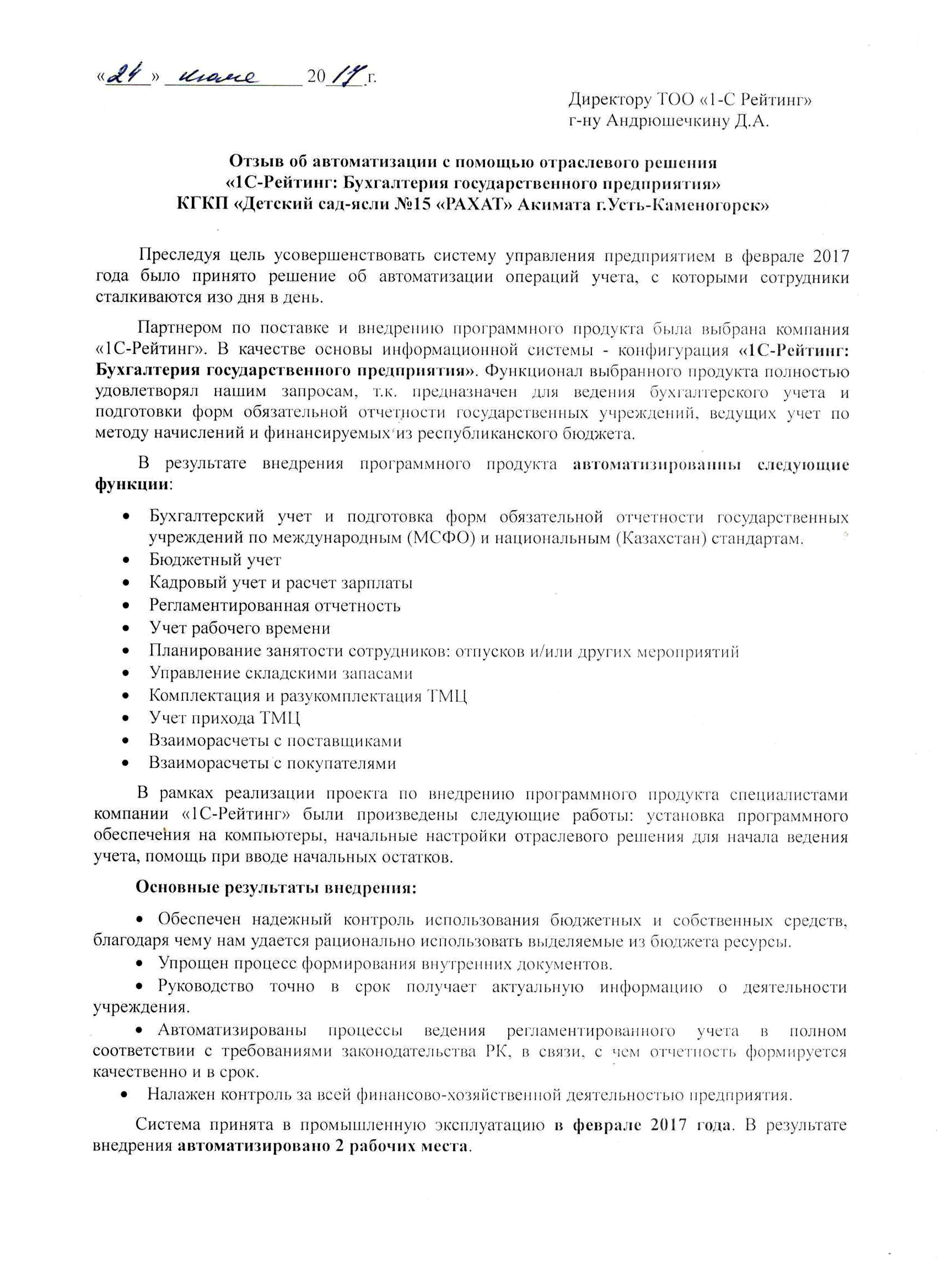 | Внедренное отраслевое решение: | 1С-Рейтинг: Бухгалтерия государственного предприятия |