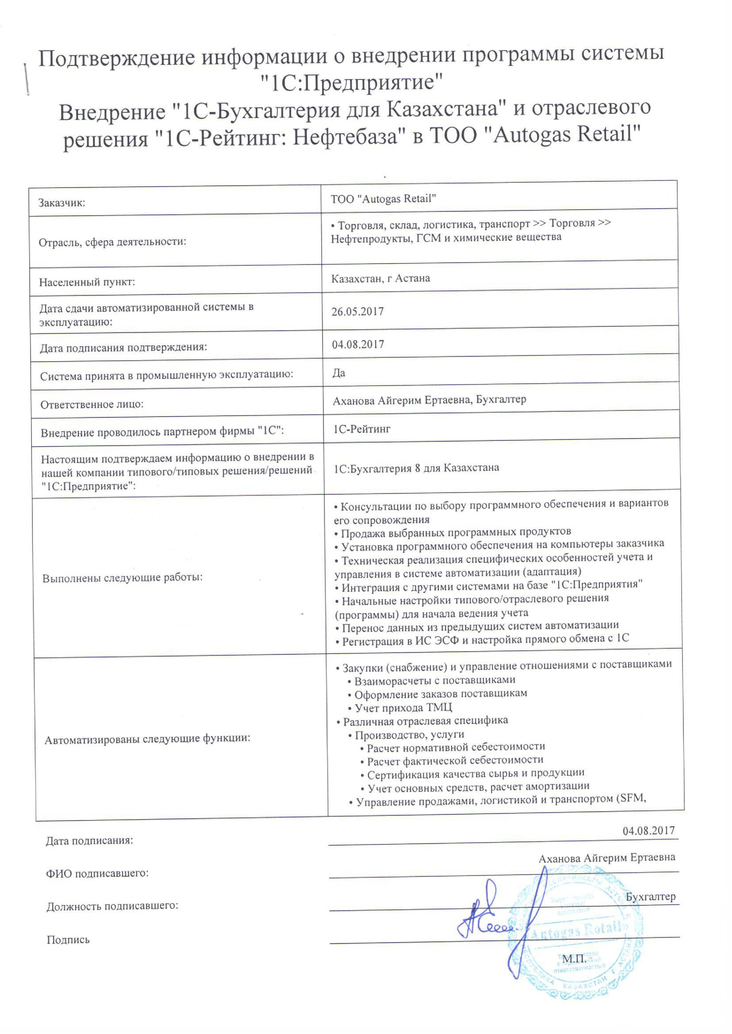 | Внедренное типовое решение: | 1С-Рейтинг: Нефтебаза |