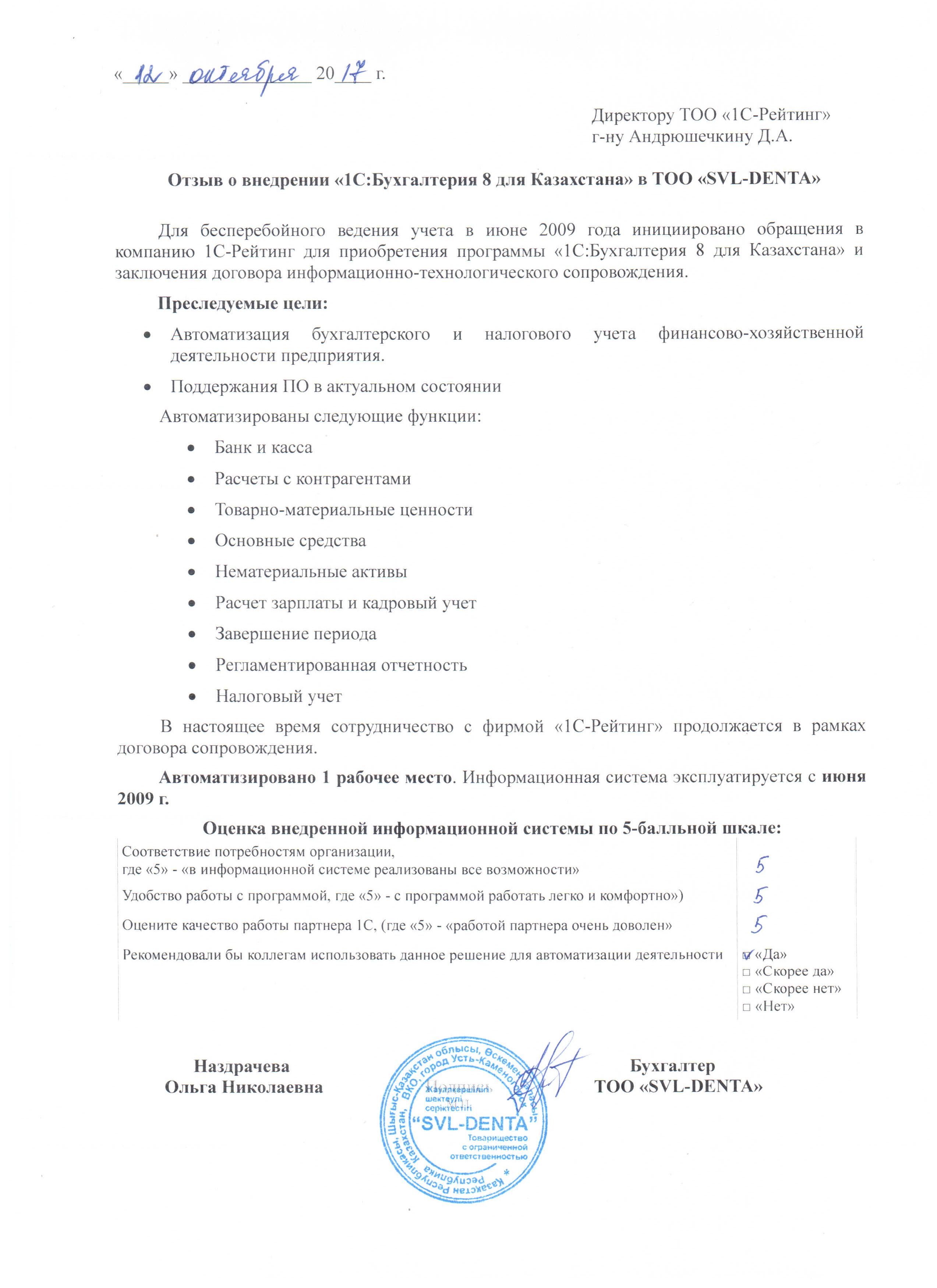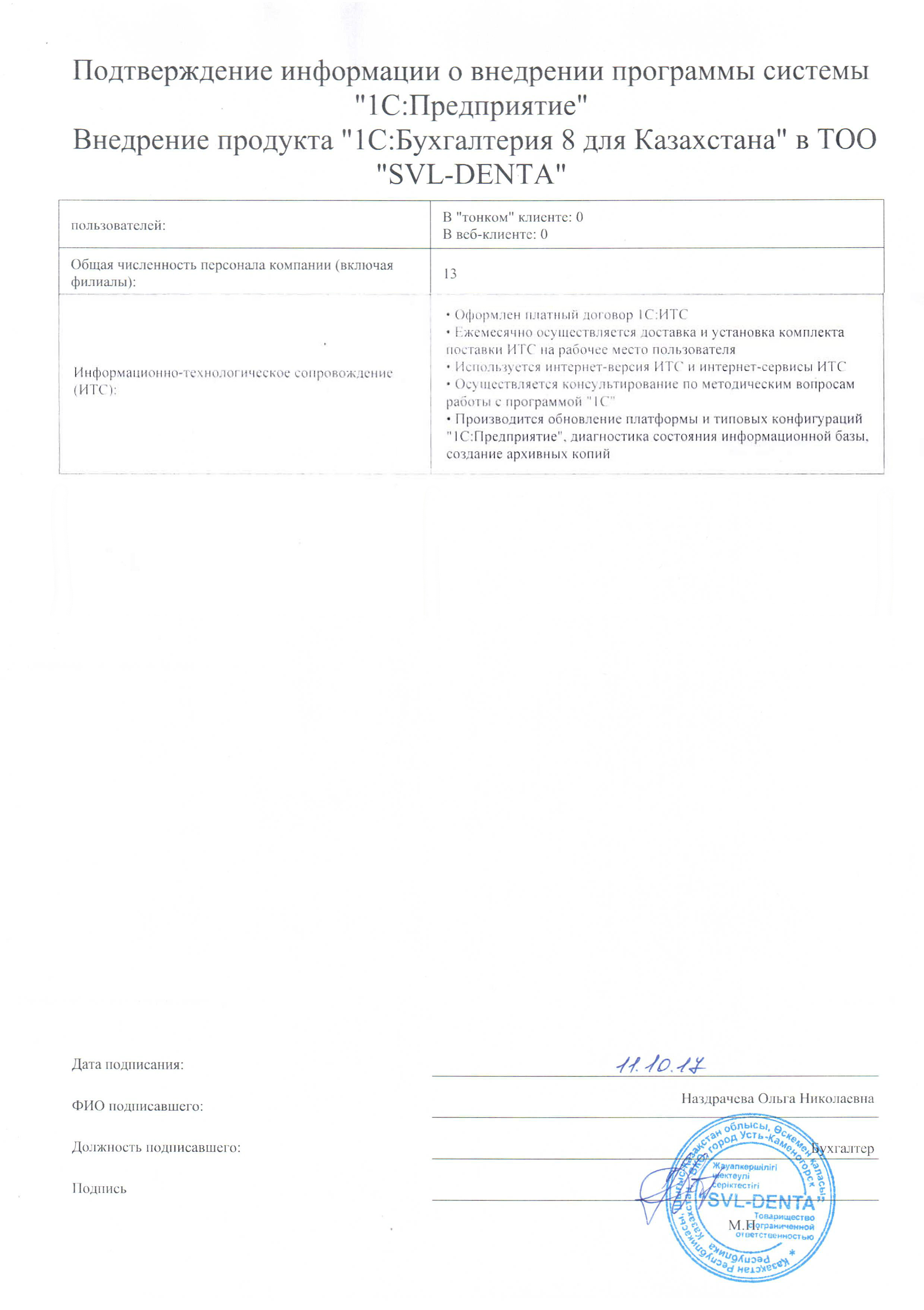 | Внедренное типовое решение: | 1С:Бухгалтерия 8 для Казахстана |