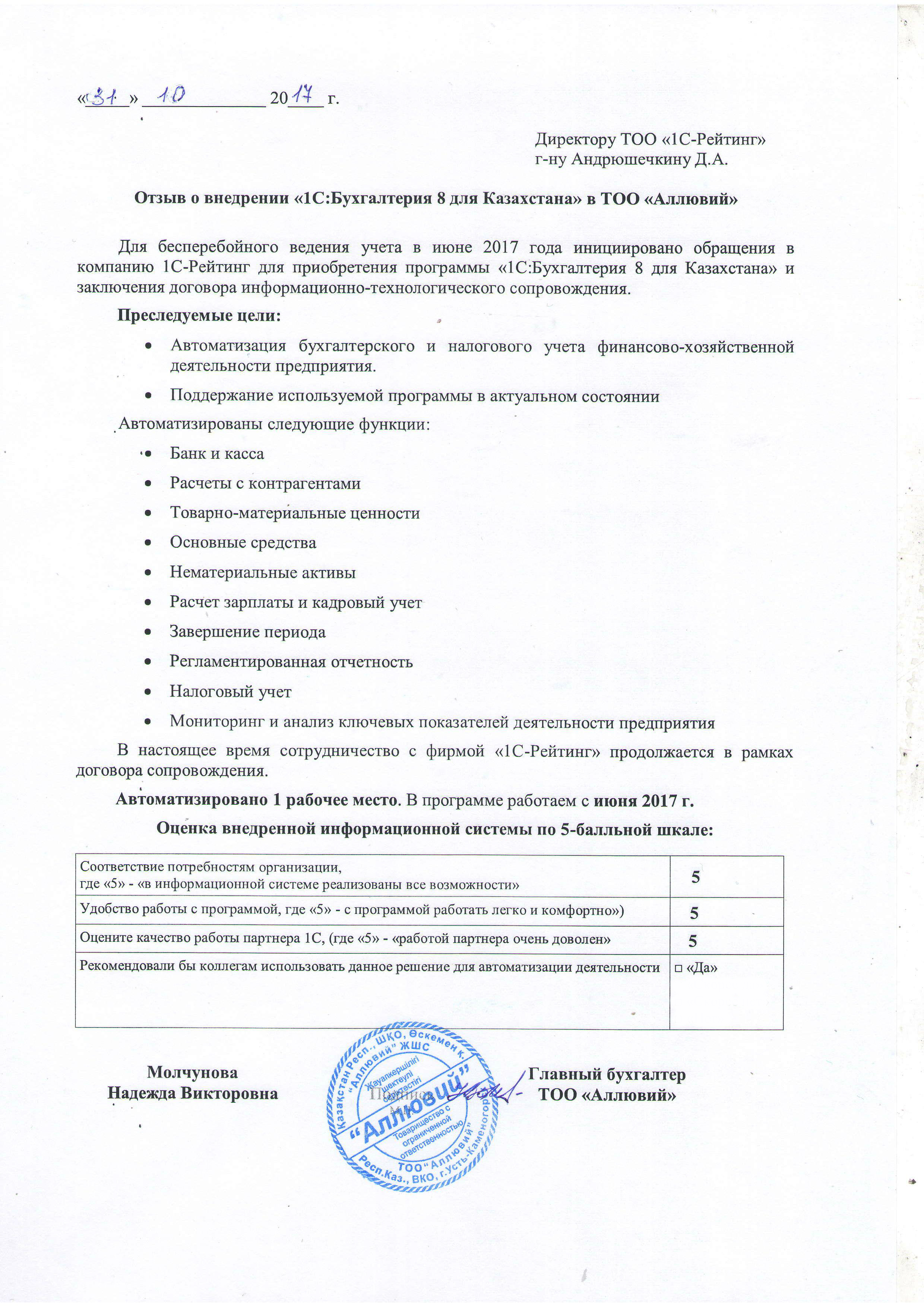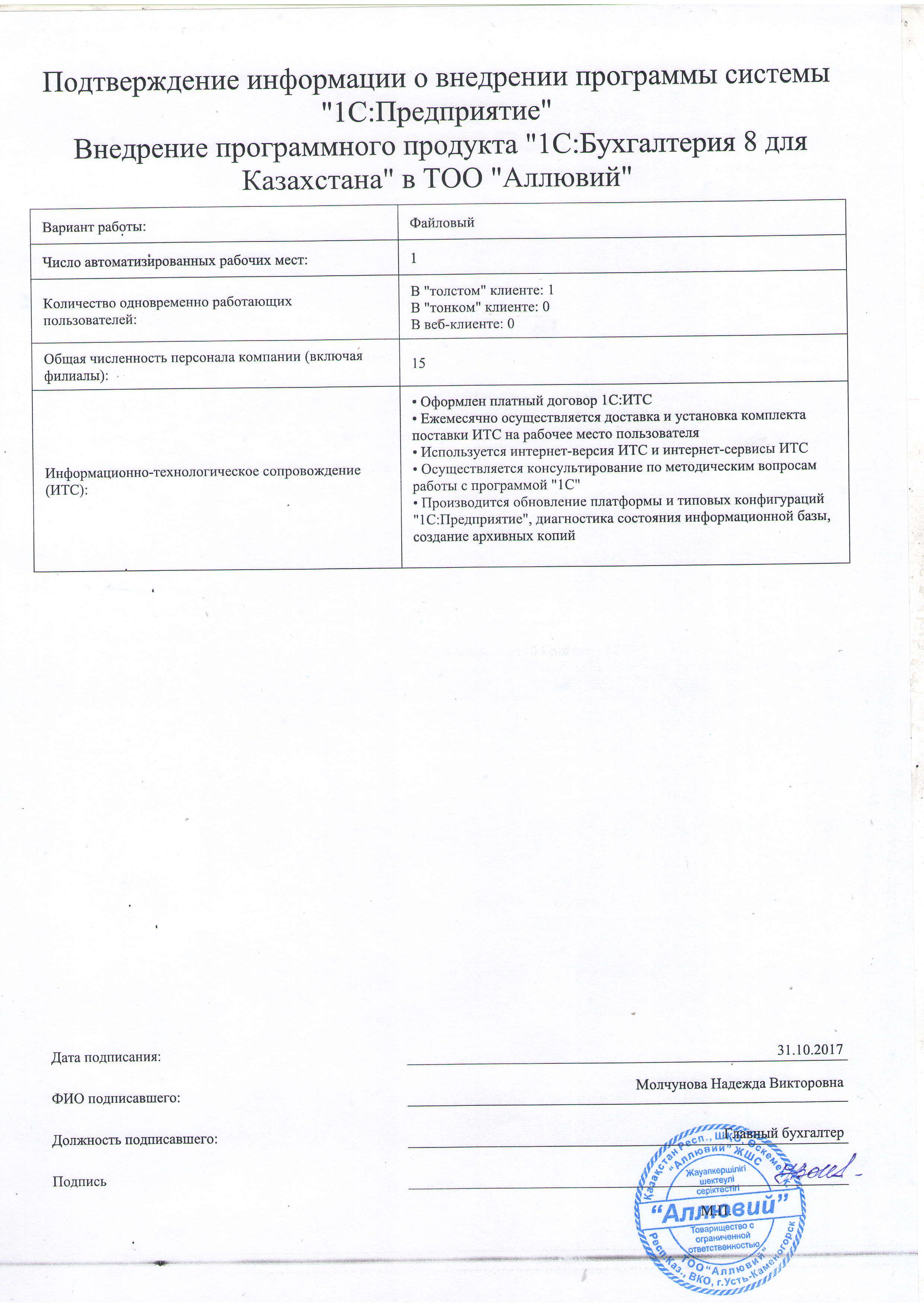 | Внедренное типовое решение: | 1С:Бухгалтерия 8 для Казахстана |