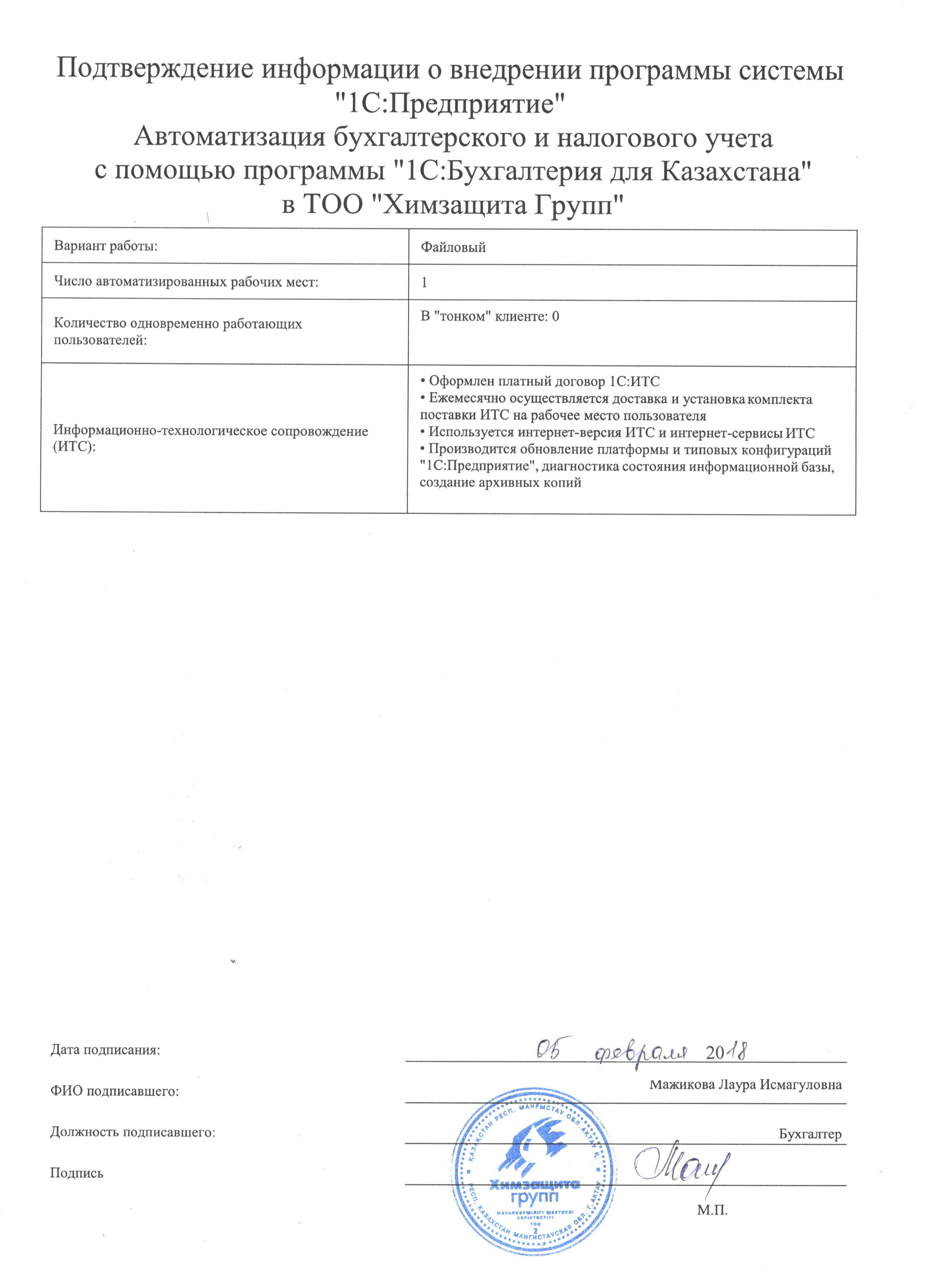 | Внедренное типовое решение: | 1С:Бухгалтерия 8 для Казахстана |