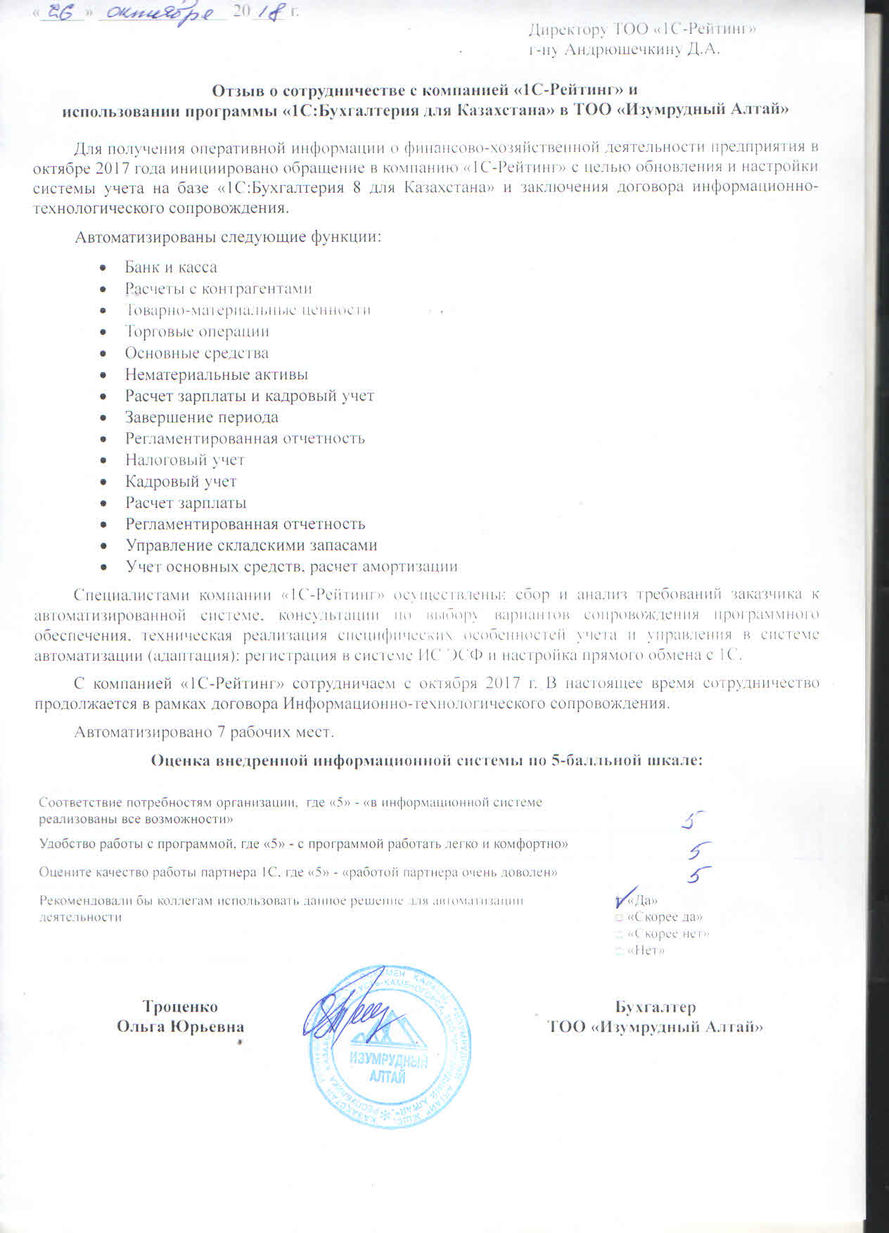 | Внедренное типовое решение: | 1С:Бухгалтерия 8 для Казахстана |