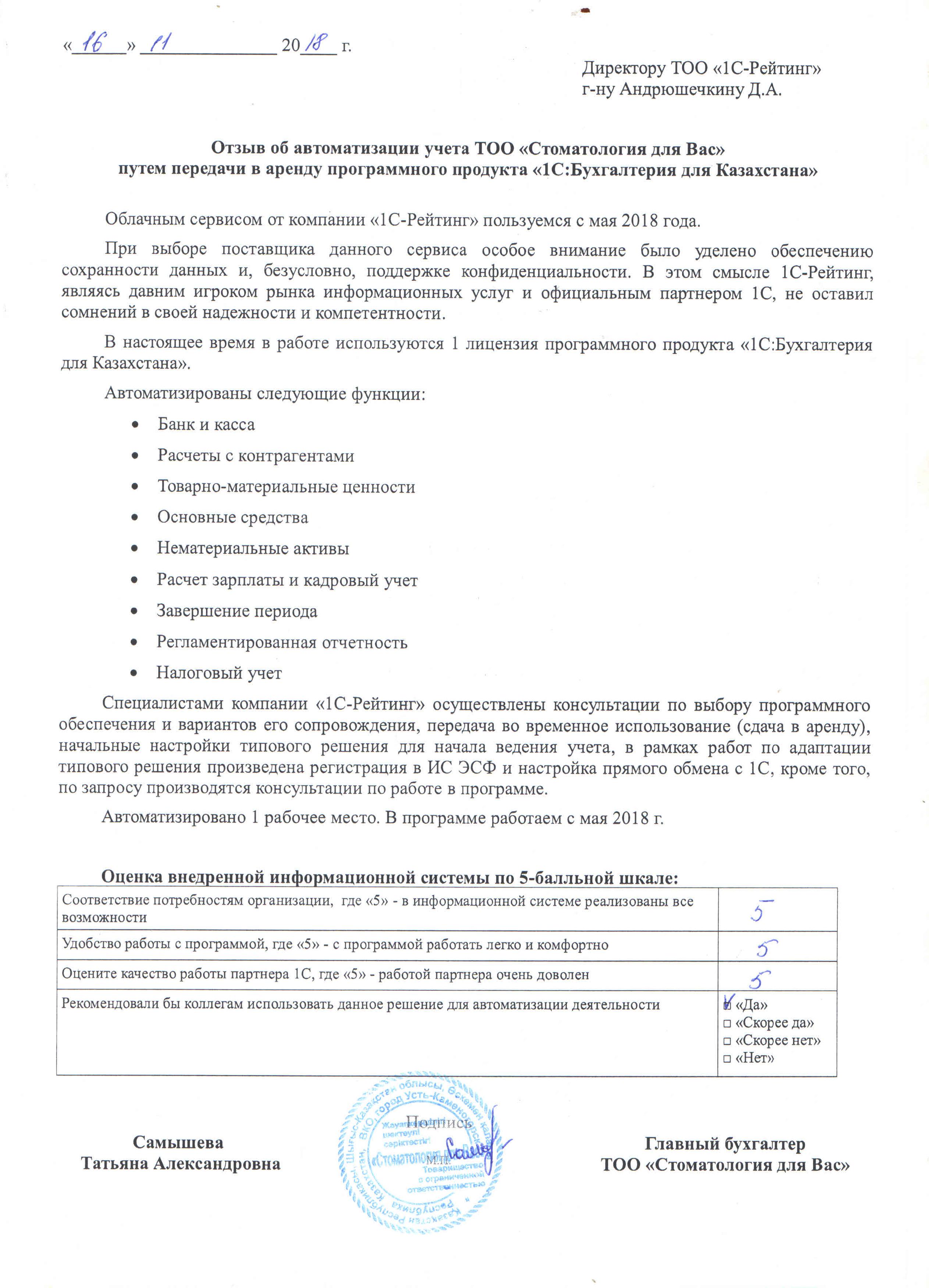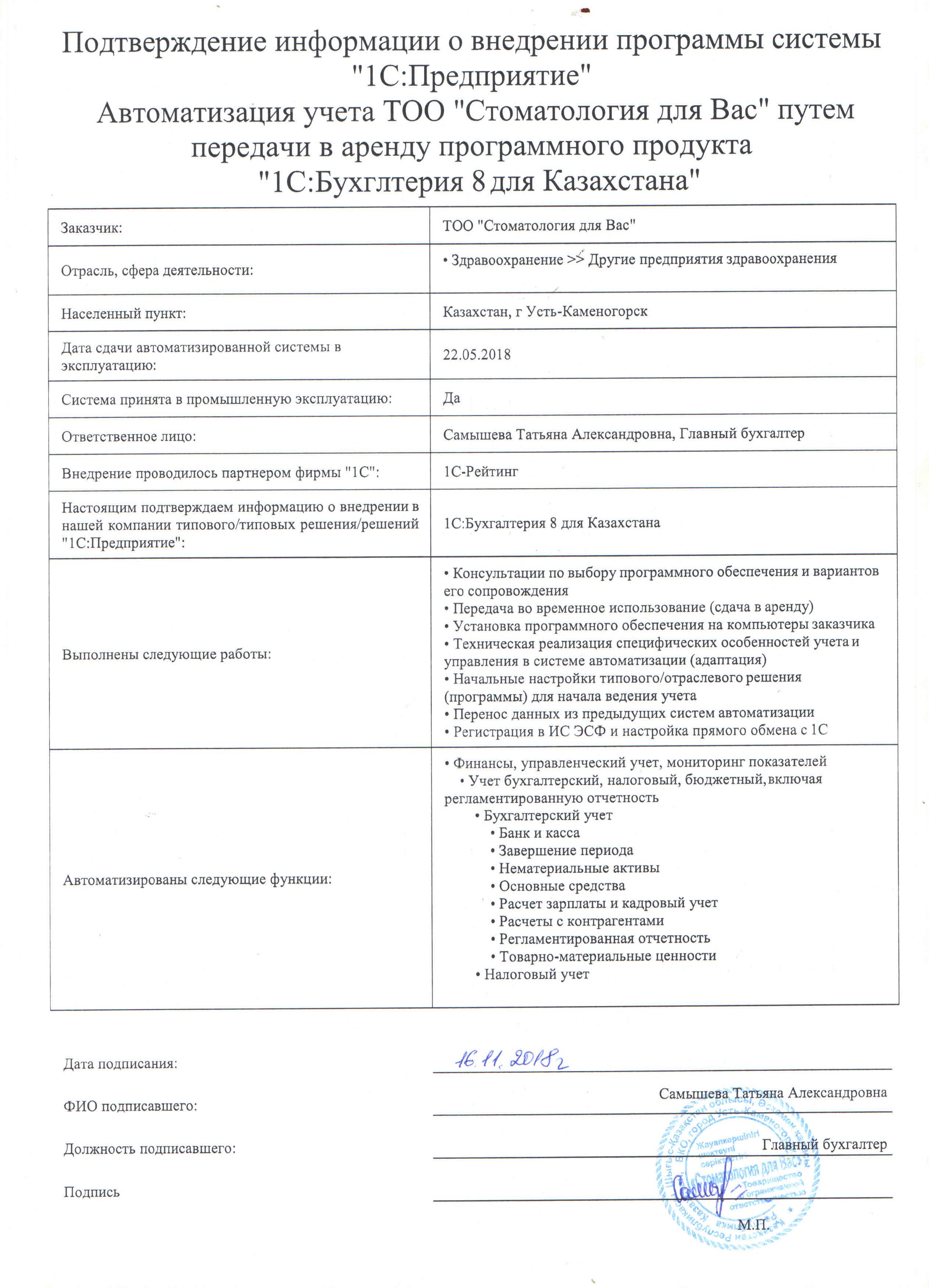 - Ежемесячно производятся работы по обновлению платформы и типовых конфигураций, диагностика состояния информационной базы, создание архивных копий