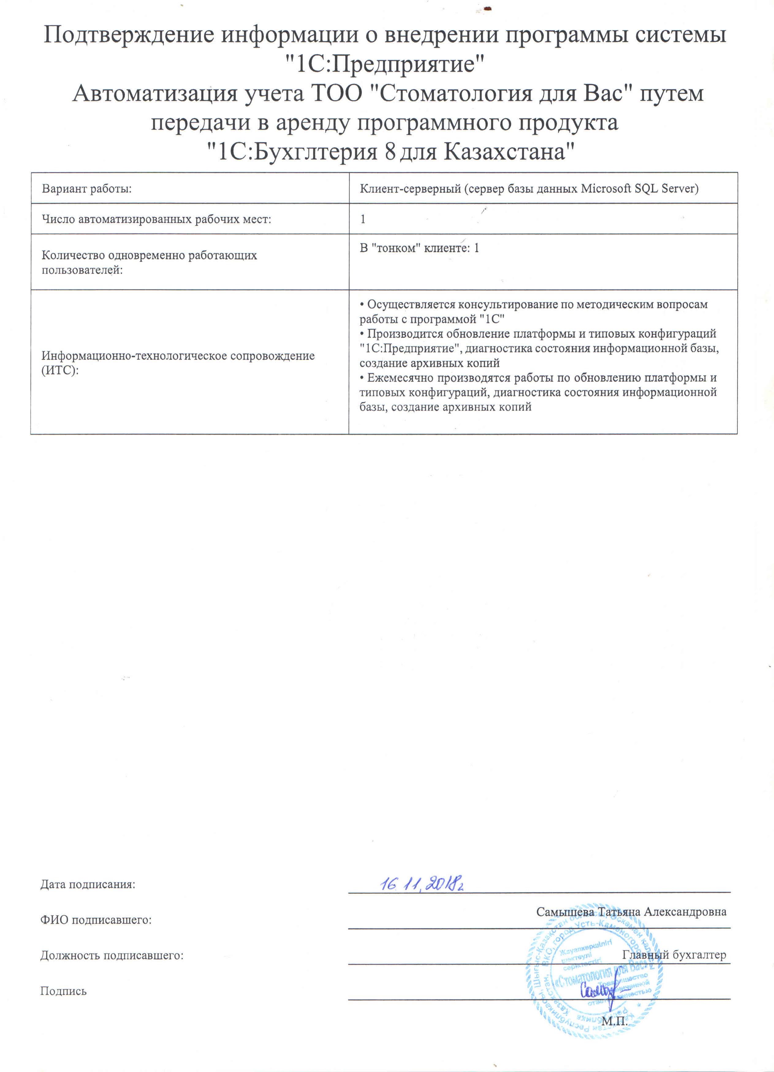 | Арендованное типовое решение: | 1С:Бухгалтерия для Казахстана |