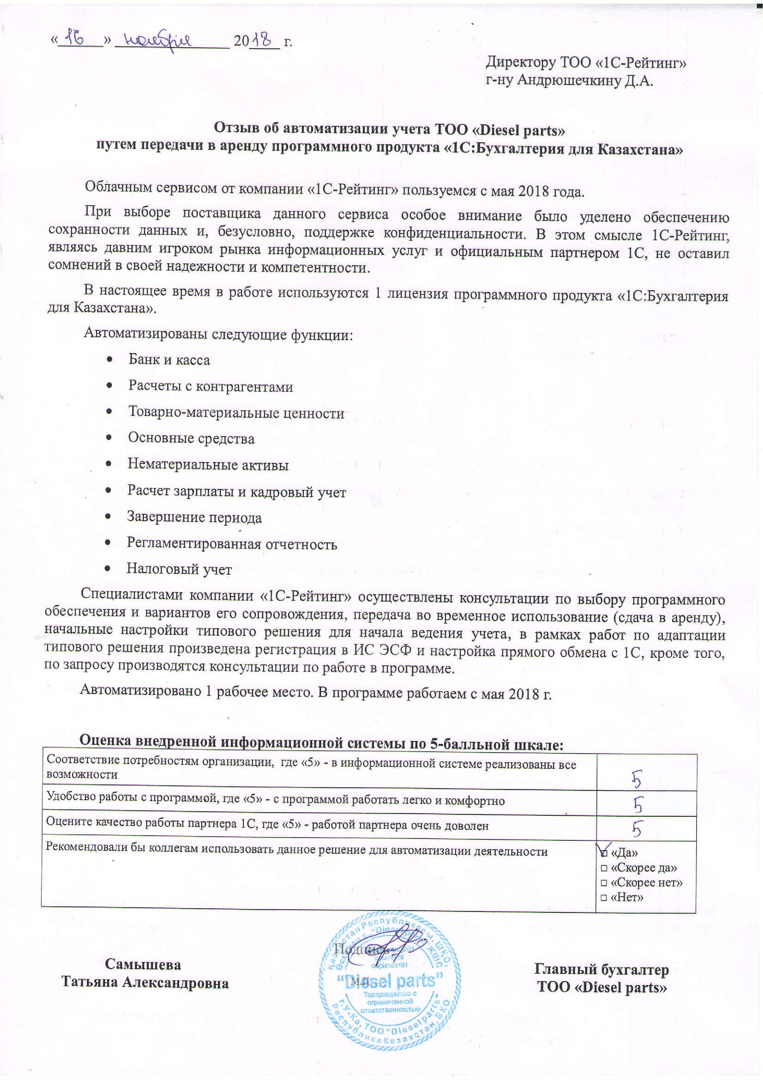 - Ежемесячно производятся работы по обновлению платформы и типовых конфигураций, диагностика состояния информационной базы, создание архивных копий
