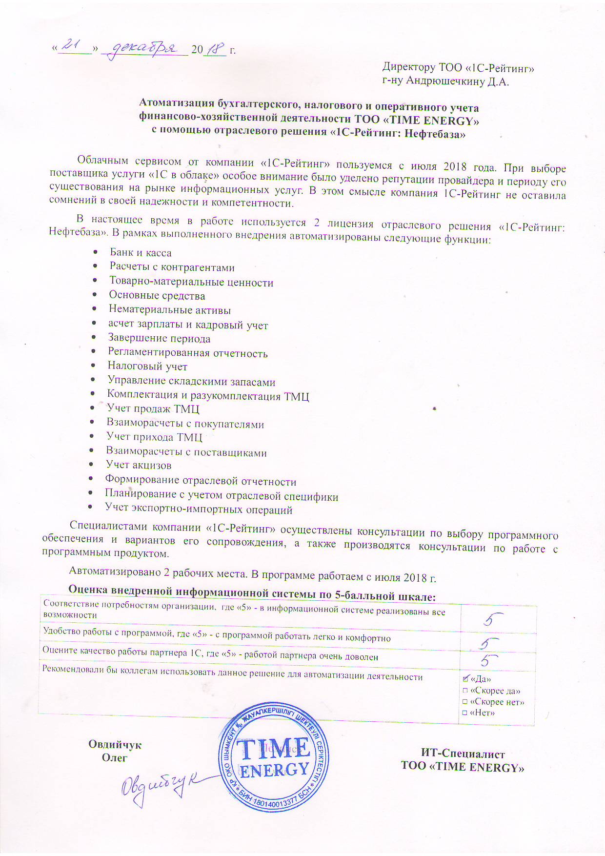 | Внедренное отраслевое решение: | 1С-Рейтинг: Нефтебаза |