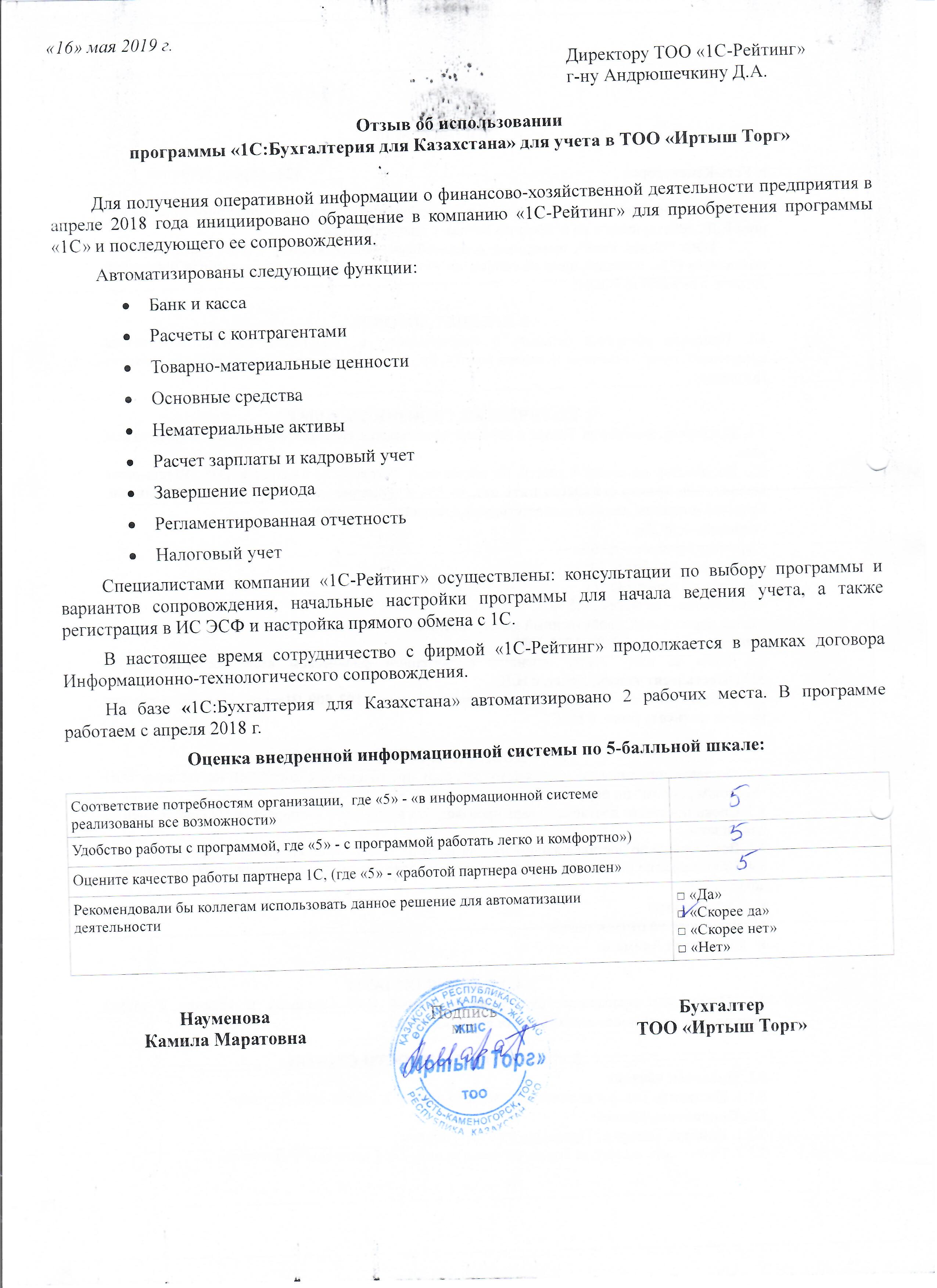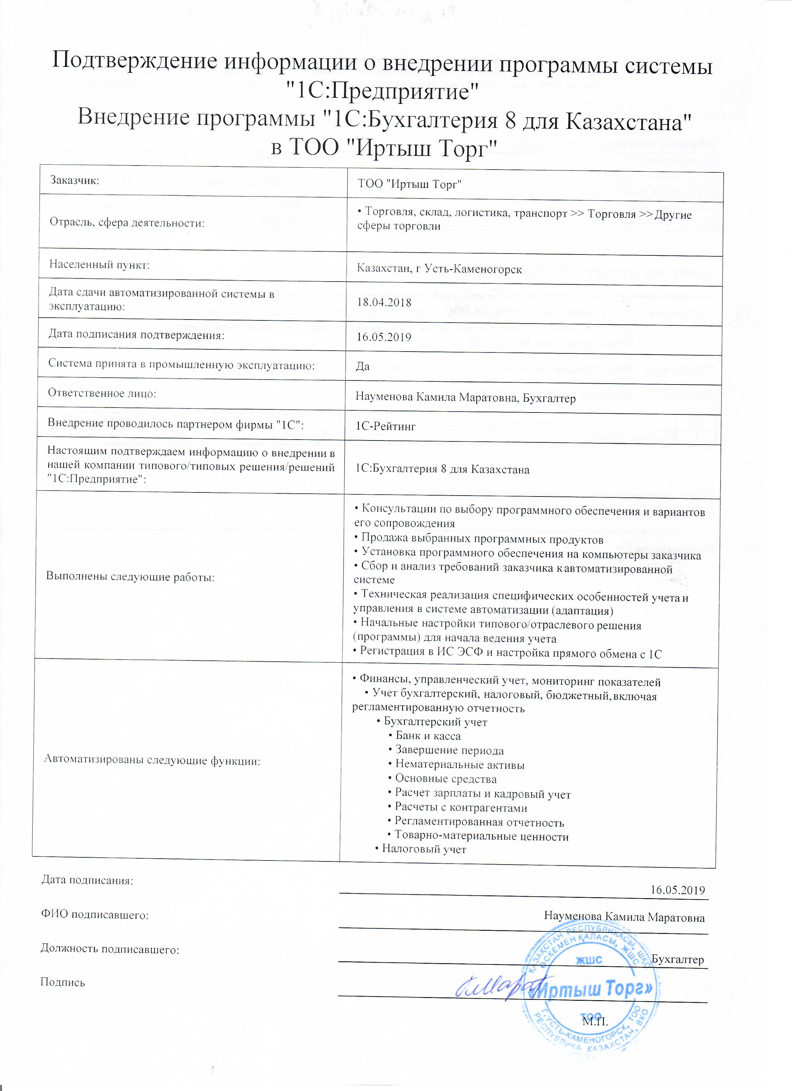 | Внедренное типовое решение: | 1С:Бухгалтерия 8 для Казахстана |