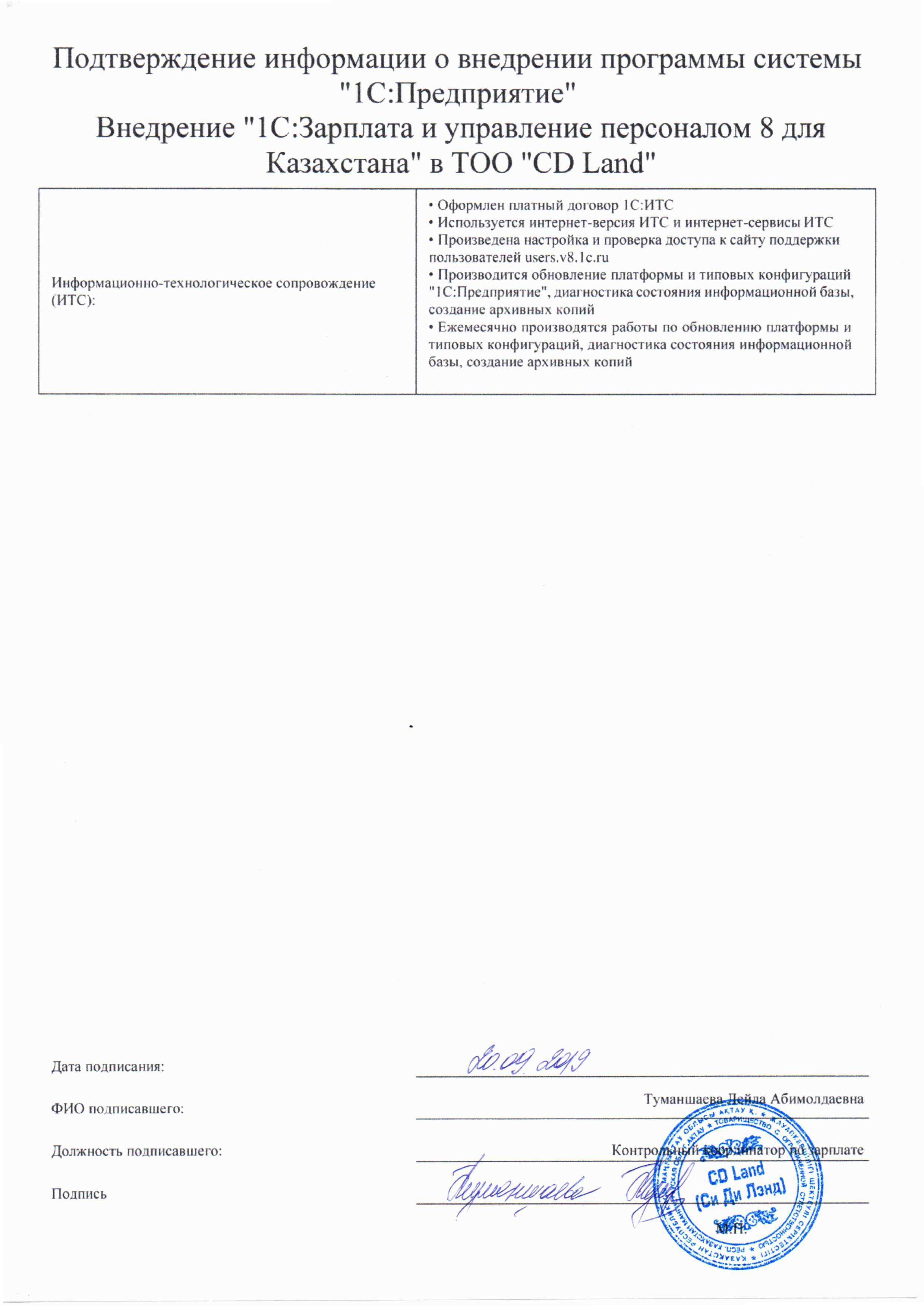 | Внедренное типовое решение: | 1С:Зарплата и Управление персоналом для Казахстана |