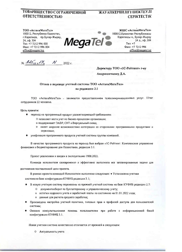 Тип проекта: Перевод учетной системы на типовое решение «1С-Рейтинг: Комплексное управление финансами и бюджетирование для Казахстана» ред. 3.1
