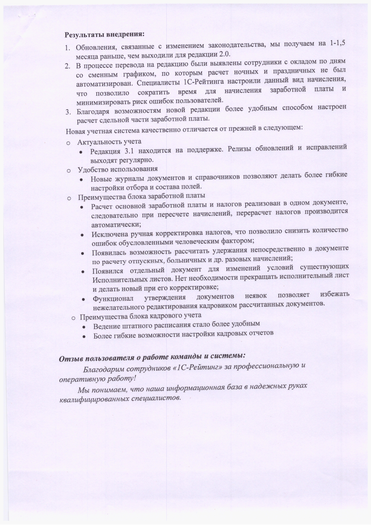 - Оказана консультационная помощь пользователям при работе с информационной базой конфигурации «1С:Зарплата и управление персоналом для Казахстана» 3.1