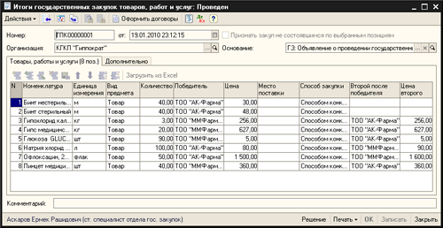 - Автоматическое формирование итогов государственных закупок.