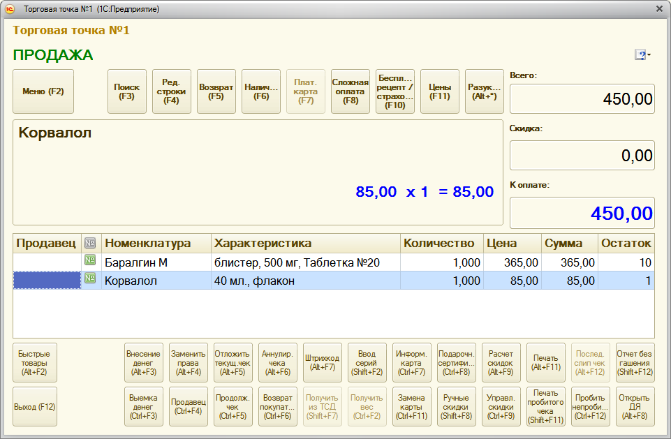 Поддерживается учет различных видов оплаты: оплата наличными, платежной картой, банковским кредитом, подарочными сертификатами, а также отпуск лекарственных средств по бесплатным рецептам. Предусмотрена сложная оплата – оплата различными способами одновременно. Расширены возможности учета денежных средств: система позволяет учитывать денежные средства, внесенные в кассу ККМ для размена, и частичную выемку денежных средств из кассы ККМ. Поддерживается инкассирование денежных средств в банк из операционной кассы аптеки.